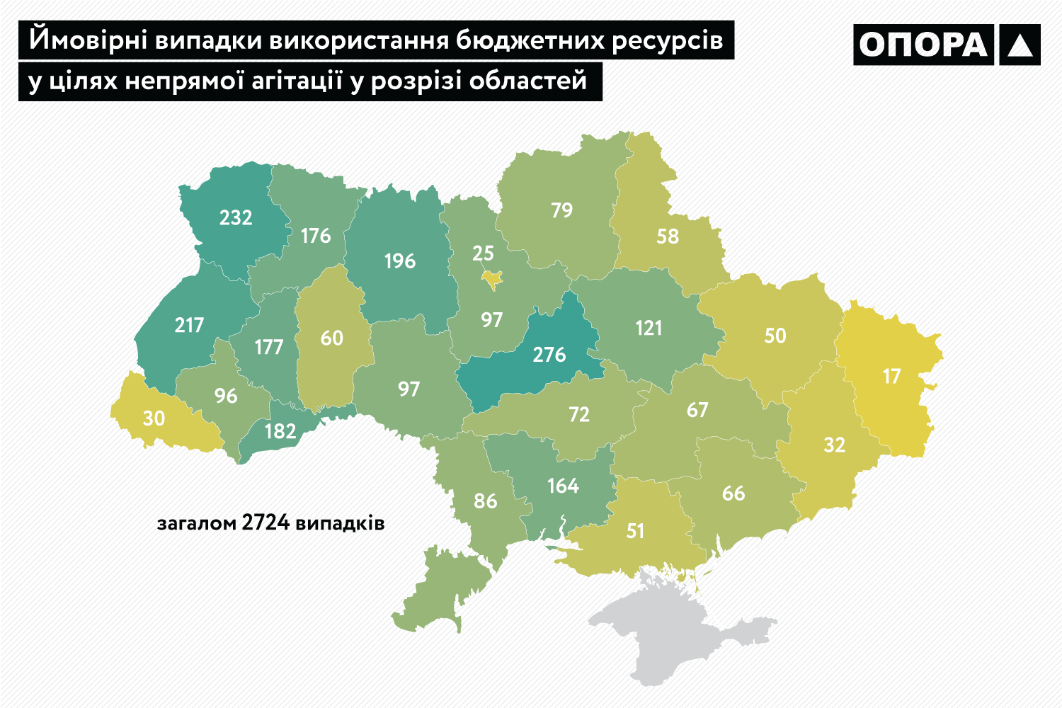 Цим займалися 147 народних депутатів, які були обрані в мажоритарних округах і 27 – списочників. Якщо говорити про кількість випадків піару на бюджетних коштах, то їх у період з червня 2018 року по липень 2019-го було зафіксовано 2724.
