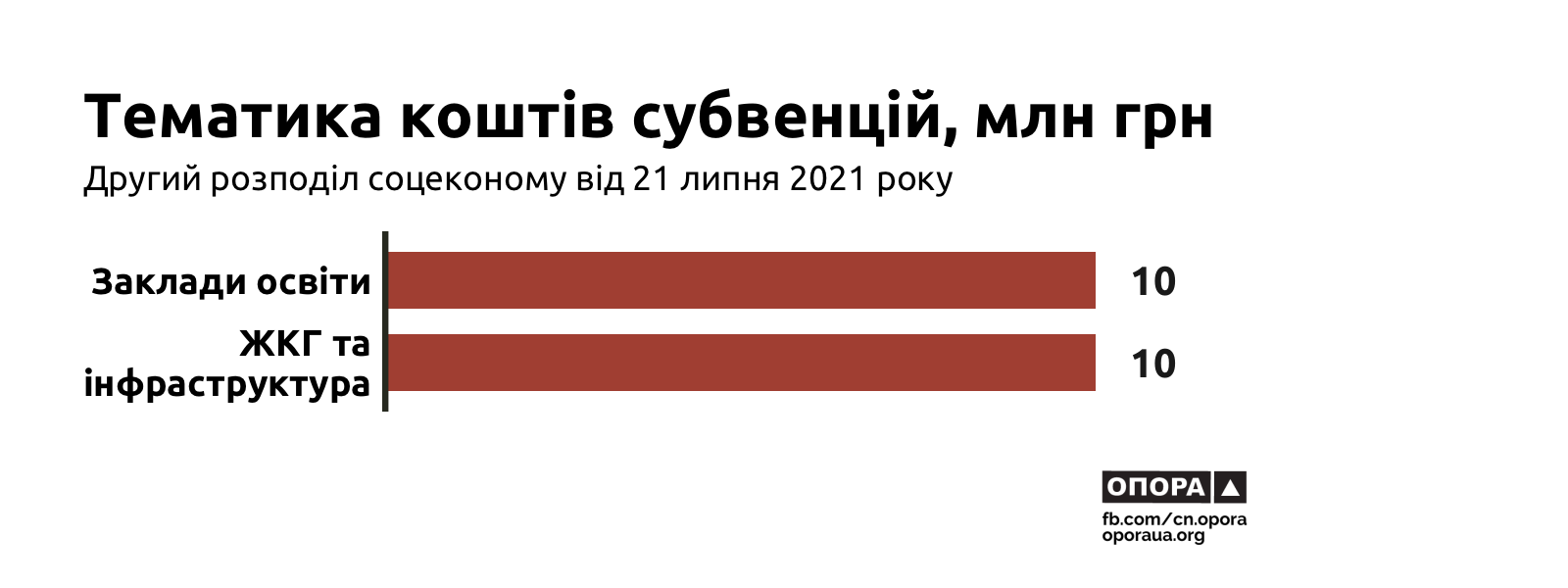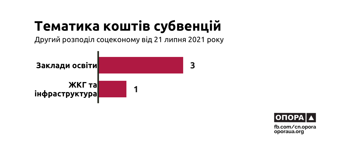 Субвенція на соціально-економічний розвиток – це грошова допомога місцевому бюджету з боку державного бюджету, яка повинна йти на фінансування певного об'єкта інфраструктури, що є важливим для розвитку громади. На жаль, розподіл відбувається у «ручному режимі», а ключовий вплив на визначення переліку об’єктів, які будуть фінансуватися, мають народні депутати. Тож практика фінансування актуальних регіональних проблем залишається механізмом піар-кампаній народних обранців. ОПОРА проаналізувала, як розподілені субвенції у 2021 році та на які з напрямків витрачаються кошти платників податків.