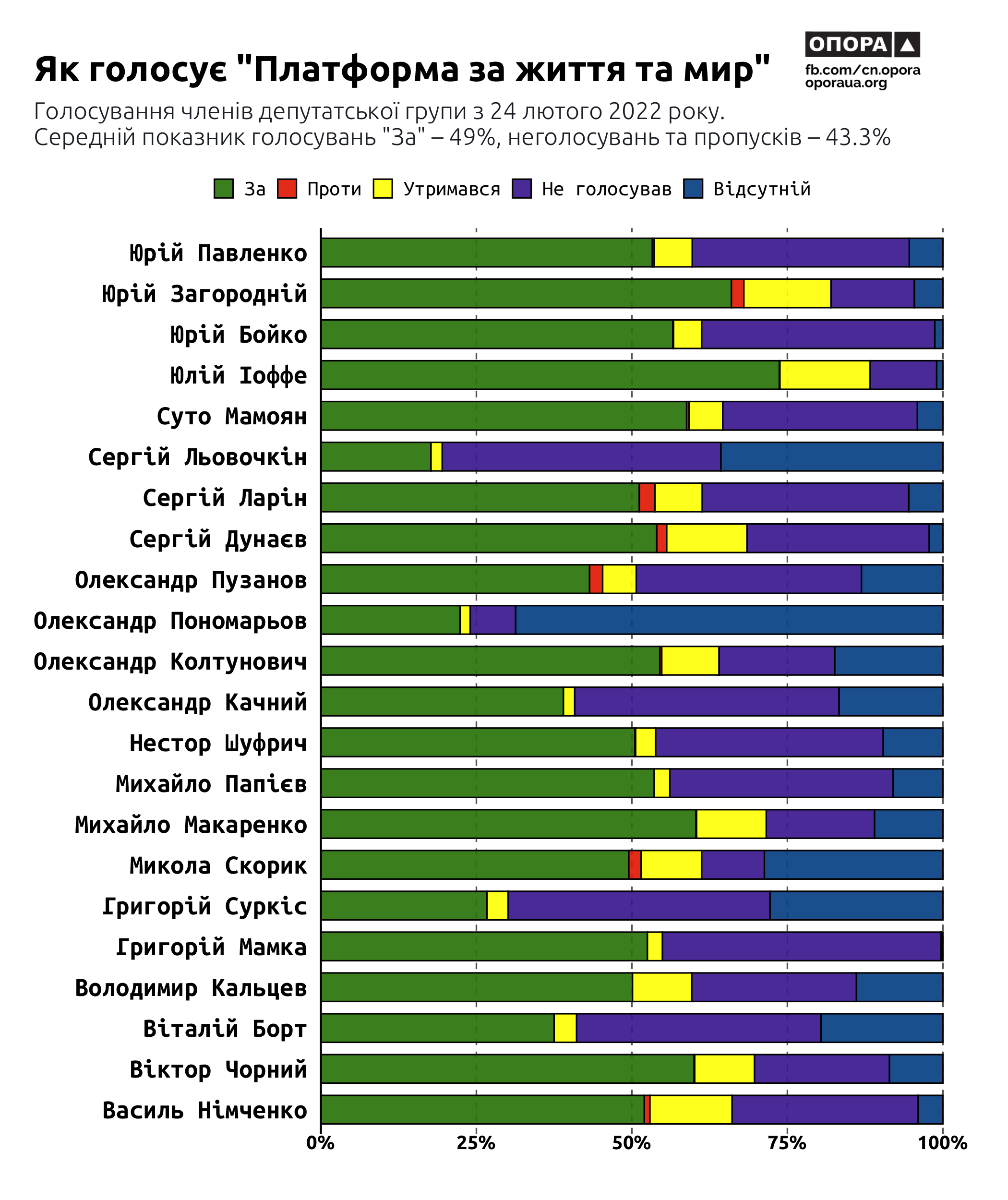 Після заборони партії “Опозиційна платформа — За життя” та розпуску відповідної фракції у Верховній Раді утворилися дві депутатські групи: “Відновлення України” і “Платформа за життя та мир”, в які й увійшла більшість депутатів з "ОПЗЖ". Відзначимо, що “лайфхак” із депутатськими групами — не новий, адже після перемоги Революції гідності ексрегіонали утворили в парламенті групи “Суверенна європейська Україна” та “За мир та стабільність”.