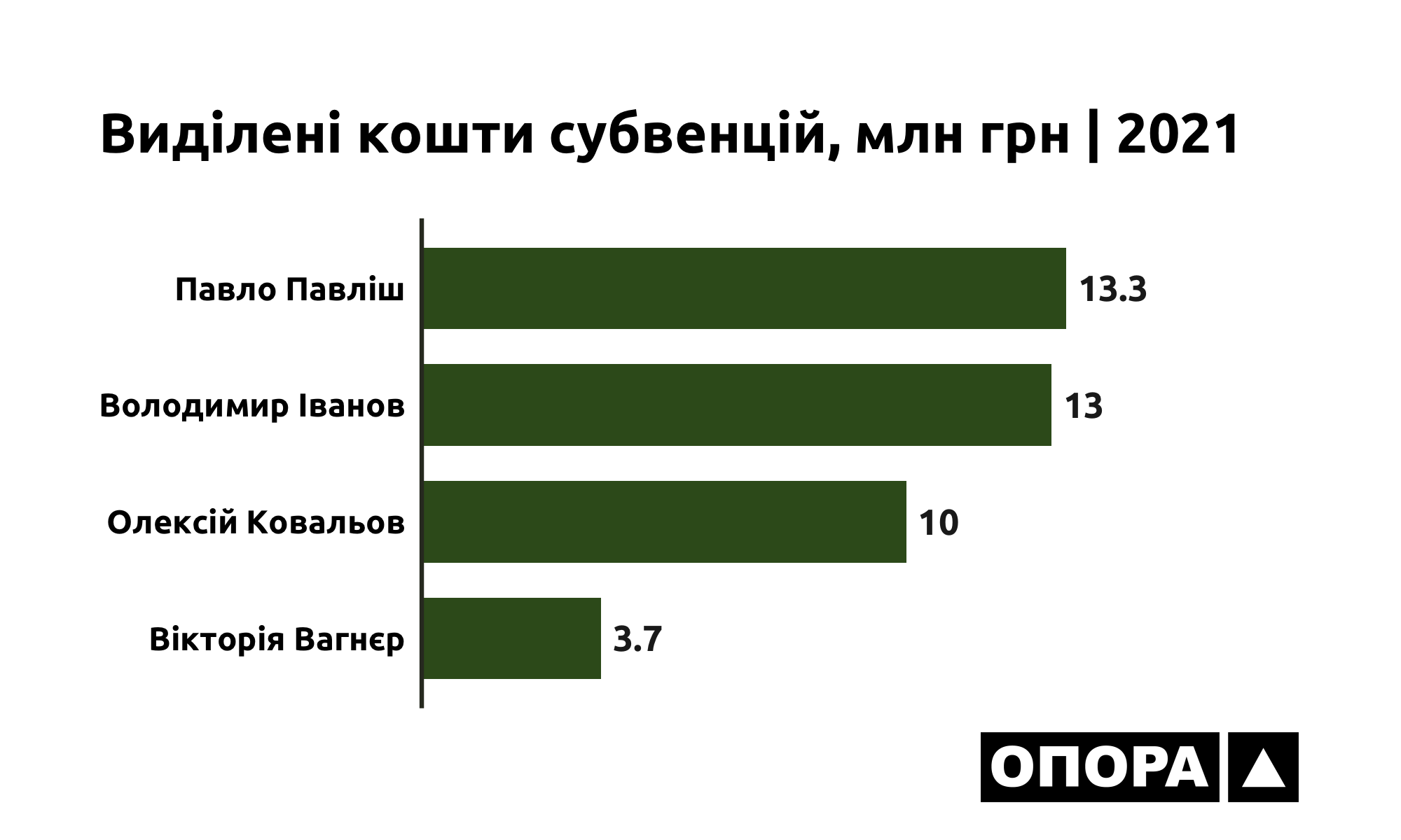 Субвенції розподіляються непрозоро. Цей процес відбувається у «ручному режимі», а ключовий вплив на визначення переліку об’єктів, які будуть фінансуватися, мають народні депутати, а не незалежна конкурсна комісія, якої немає. У підсумку, виборчі округи депутатів, які лояльні до уряду та підтримують його політику, отримують значно більше коштів, ніж округи опозиційних депутатів. Фактично, Уряд створив умови, коли депутати можуть на власний розсуд вирішувати скільки та на який округ, об'єкт будуть спрямовані бюджетні кошти і більше того – використовувати ці кошти для власних піар-кампаній. Ключовою тенденцією розподілу субвенцій у 2021 році стало те, що більшість округів отримало рівно по 10 мільйонів гривень або практично наближену до цієї цифри суми. Це ще раз засвідчує, що при виділенні коштів не враховувався стан соціально-економічного розвитку регіонів, кошти спрямовуються на основі політичної доцільності. Виділили всім приблизно однакові суми, мабуть, щоб нікого не образити.