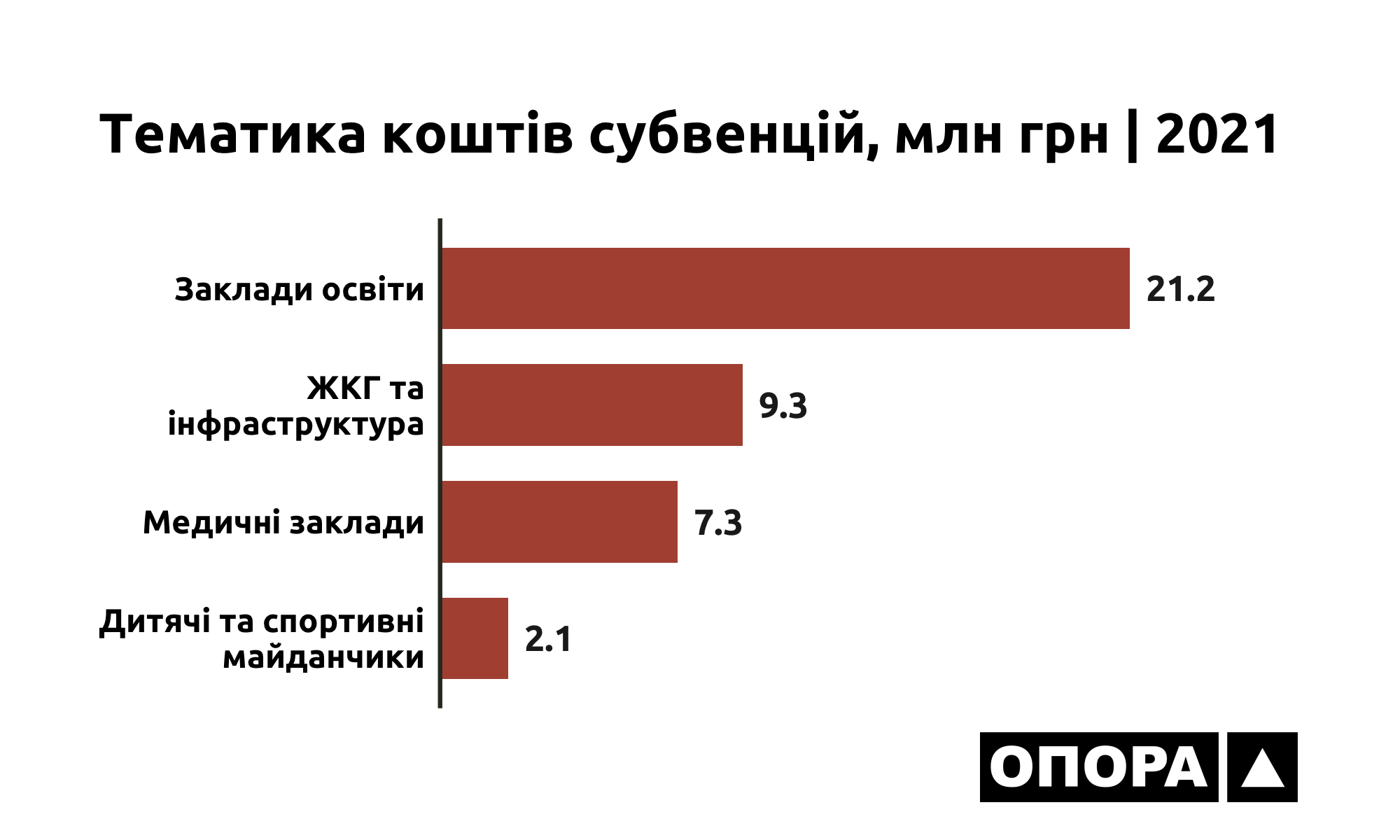 У рамках розподілу субвенцій для громад Херсонщини найбільша сума коштів пов’язана із закладами освіти – 21,2 млн грн. На другому місці сфера ЖКГ та інфраструктура – 9,3 млн грн. Медичні заклади отримали 7,3 млн. грн, а дитячі та спортивні майданчики – 2,3 млн грн.