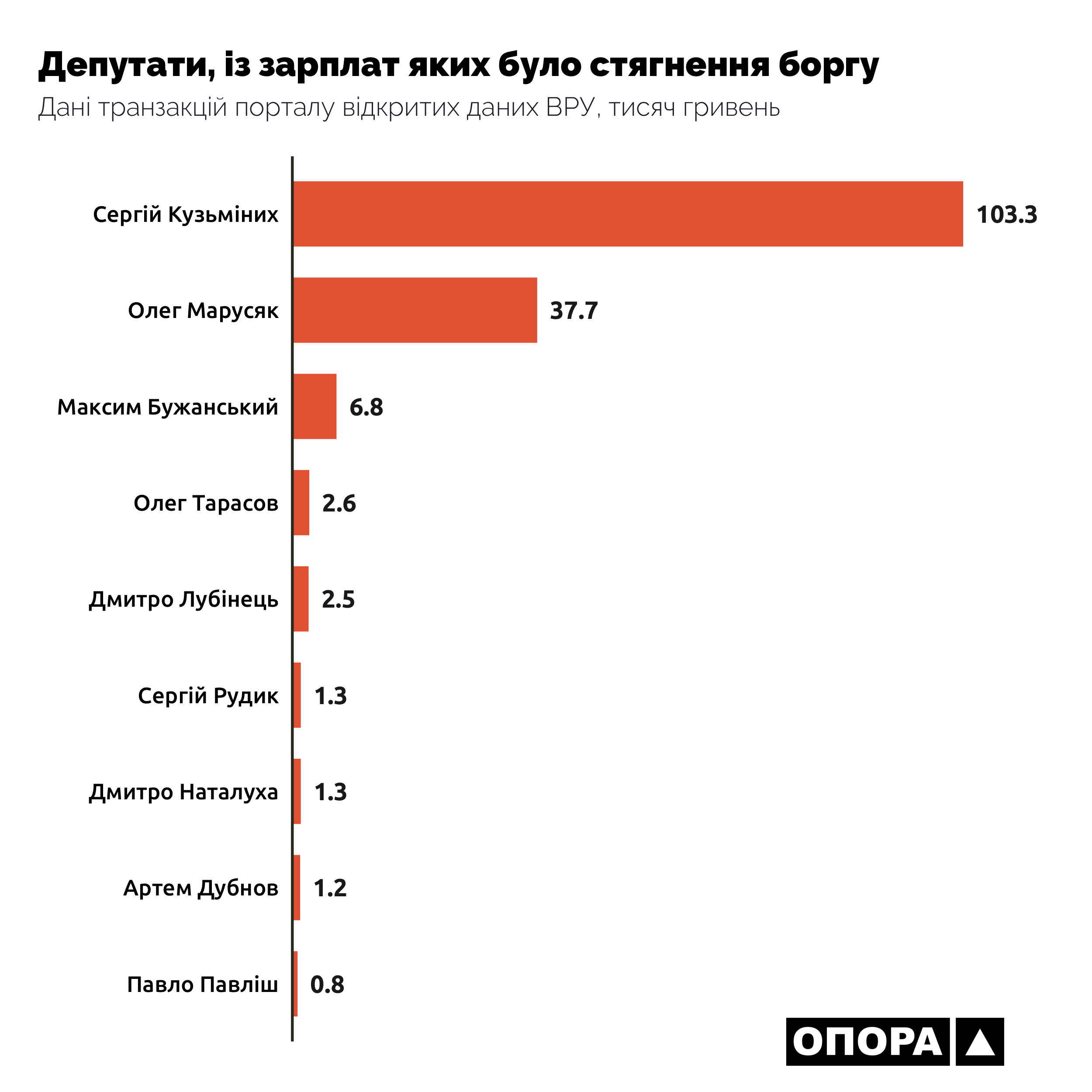 Ще однією цікавою категорією транзакцій – є погашення боргу із заробітної плати депутатів. Такі стягнення, зокрема, були із 9 депутатів: