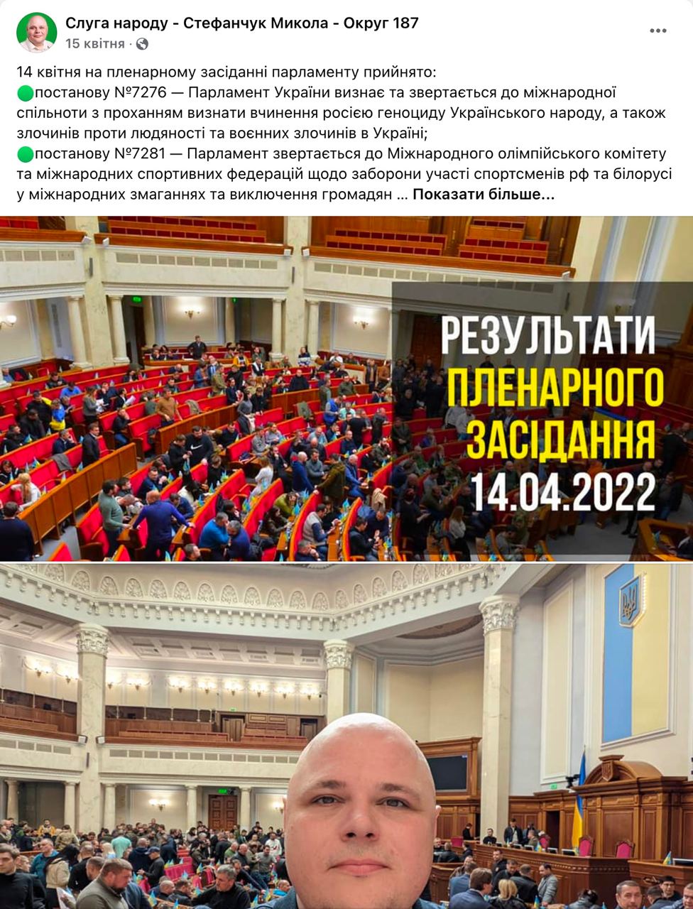 Того ж дня депутат опублікував на своїй сторінці фото з іншими народними обранцями з Хмельниччини – мажоритарником від партії «Слуга народу» Миколою Стефанчуком та списочниками від цієї ж партії Сергієм Мандзієм та Юрієм Заславським, запевнивши виборців, що нардепи перебувають в Україні.