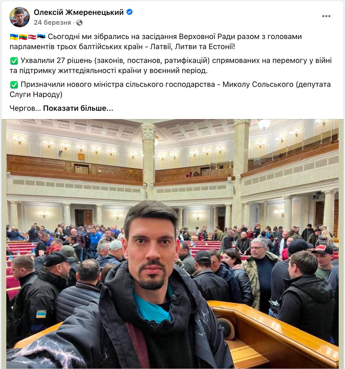 На сторінці Олексія Жмеренецького – багато дописів з офіційних каналів. У березні депутат пояснив, що на період війни деяким депутатам, зокрема й йому, доручили додаткову роль комунікаторів у соціальних мережах: «Ми збираємо інформацію із десятків різних джерел, у тому числі закритих, спецслужбових, фільтруємо фейки та поширюємо у мережі багатьма мовами 24/7».