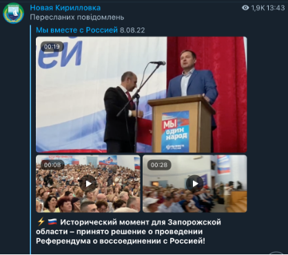 Захоплюючи українські міста і селища, окупанти створюють для місцевих жителів не лише фізичну, а й інформаційну блокаду. На прикладі агітації за псевдореферендуми на тимчасово окупованих територіях ми бачимо, як росіяни намагаються залякувати, вводити в оману та створювати ілюзію «благополучного й щасливого майбутнього в російській сім’ї». На жаль, тоді як західні країни блокують російські пропагандистські медіа, а інші соцмережі видаляють контент, із дезінформацією щодо російсько-української війни, Telegram не виявляє ентузіазму до співпраці з Українською державою для захисту інформаційної безпеки країни у стані війни.