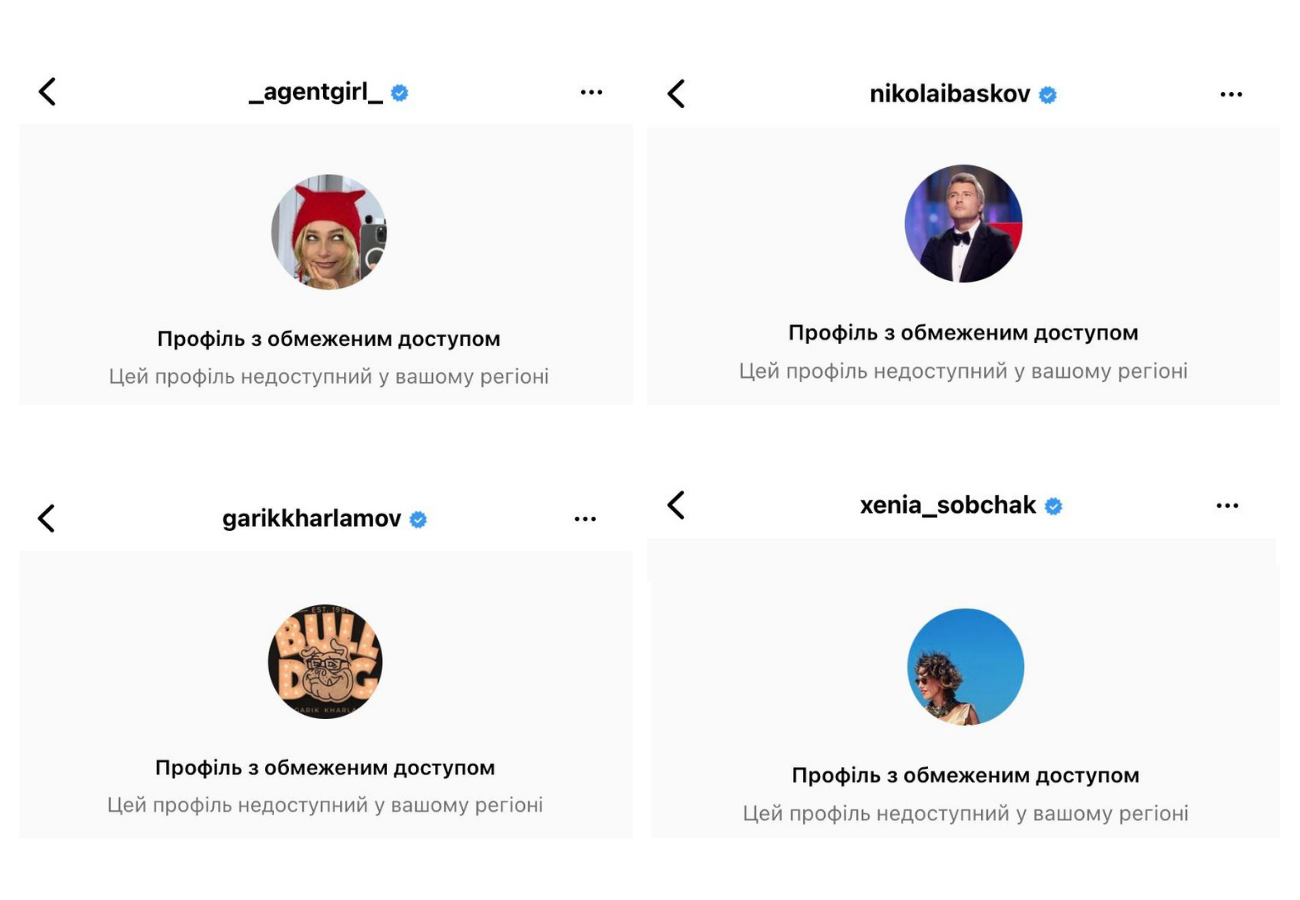 Зараз, спробувавши потрапити до акаунту цих впливовців, ви, швидше за все, побачите ось такий напис: "Профіль обмеженим доступом. Цей профіль недоступний у вашому регіоні".