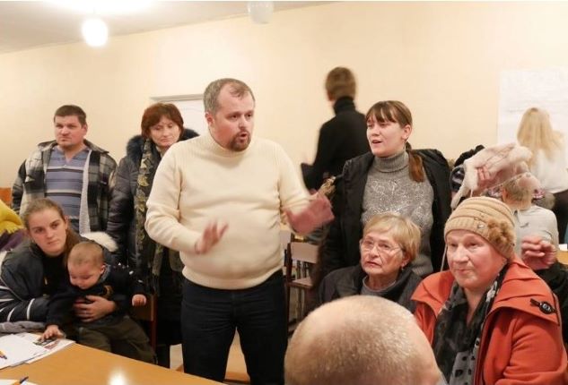 Виступ голови громади Дениса Коротенка на зустрічі у форматі «світового кафе» в Августинівці, листопад 2018.