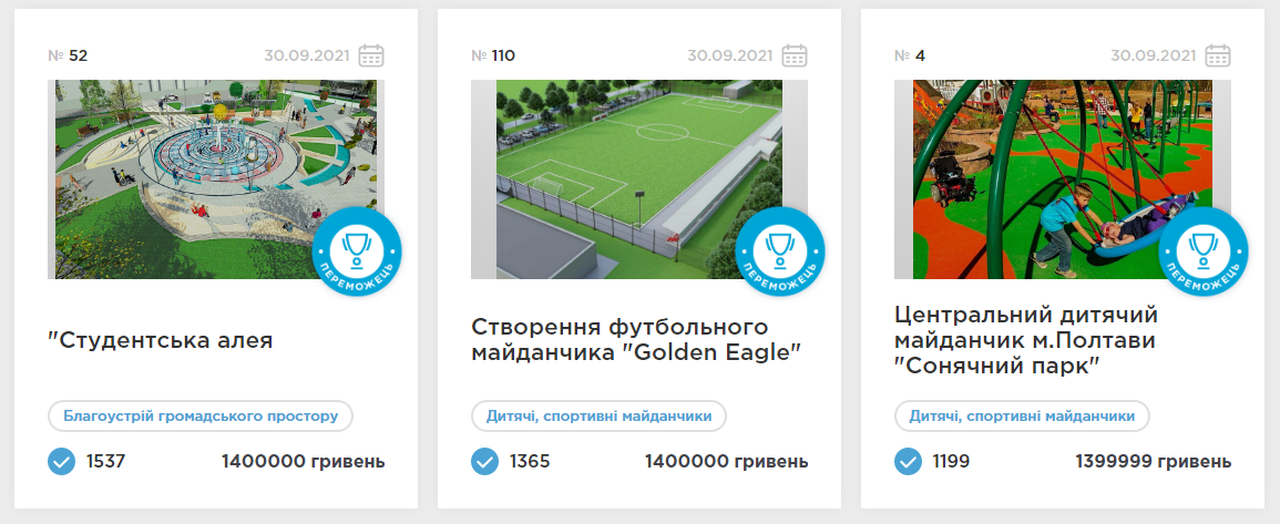 3 з 49 проєктів-переможців бюджету участі у 2021 році, платформа е-DEM
