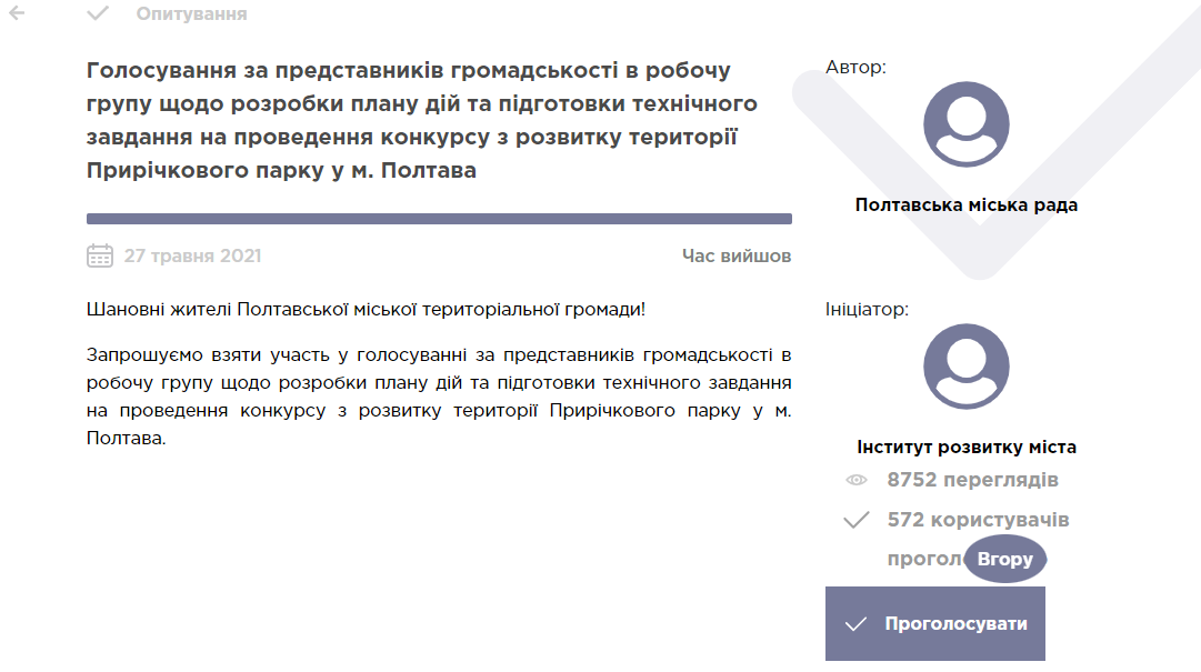 До робочих груп планували включити по 7 представників громадськості. Участь у кожному з голосувань взяло більше 800 полтавців.