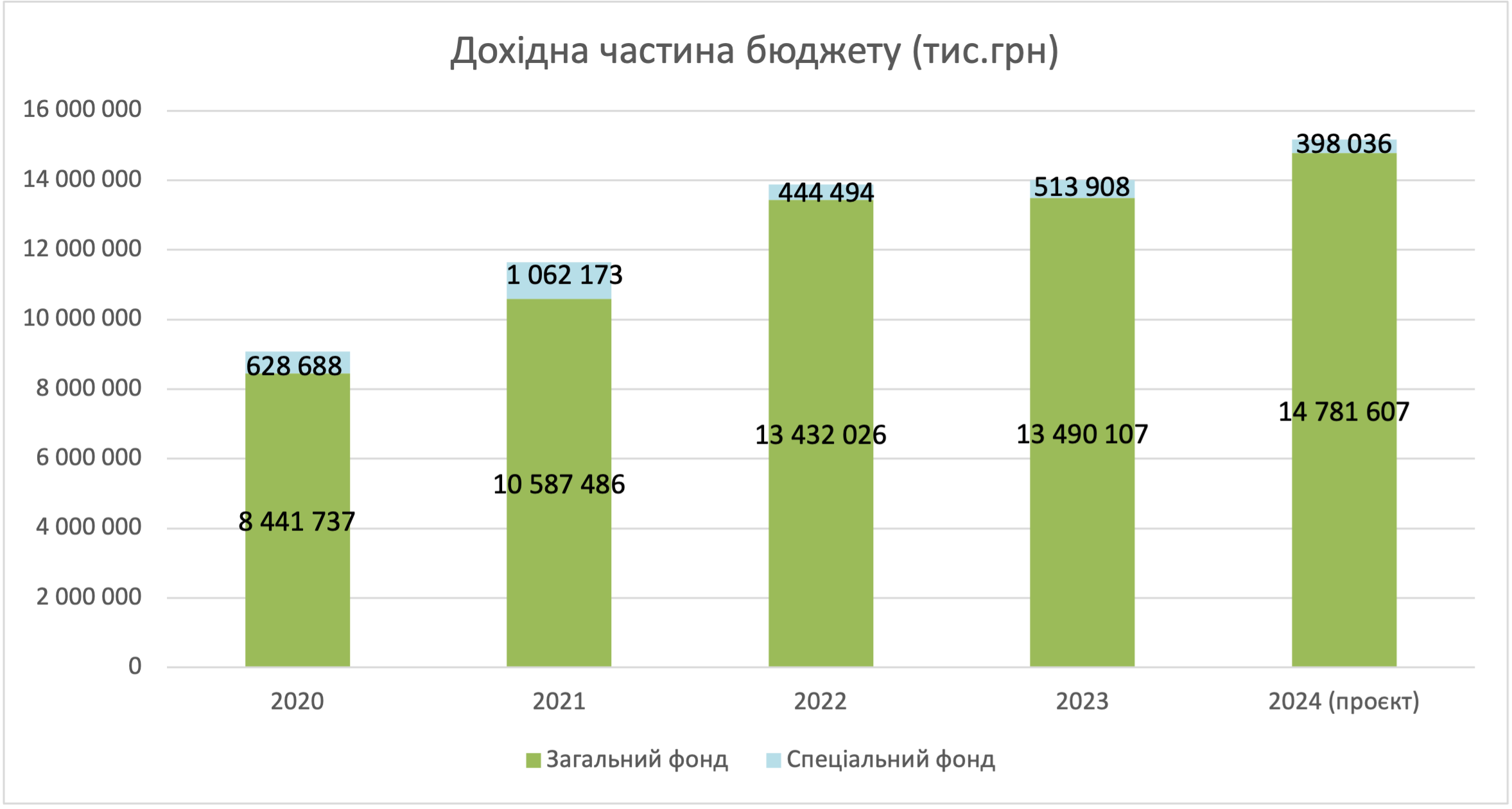 Протягом останніх чотирьох років доходи міського бюджету зростали. Якщо у 2020 році вони становили дещо більше 9 млрд грн, то у 2022 році сягнули вже 13,8 млрд, а на 2024 рік заплановано отримати більше 15 млрд грн.