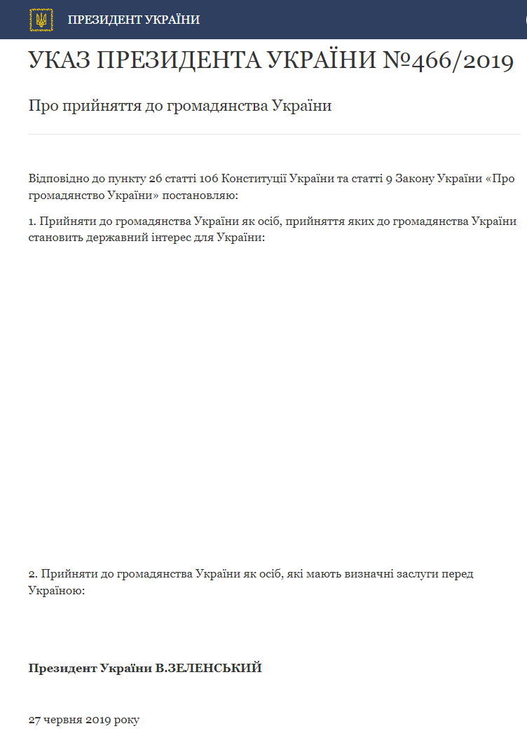 Заслуговує на увагу й те, що деякі Укази Президента, що стосуються прийняття чи припинення громадянства, раніше оприлюднювалися на сайті Президента України, зокрема, Указ № 466/2019.