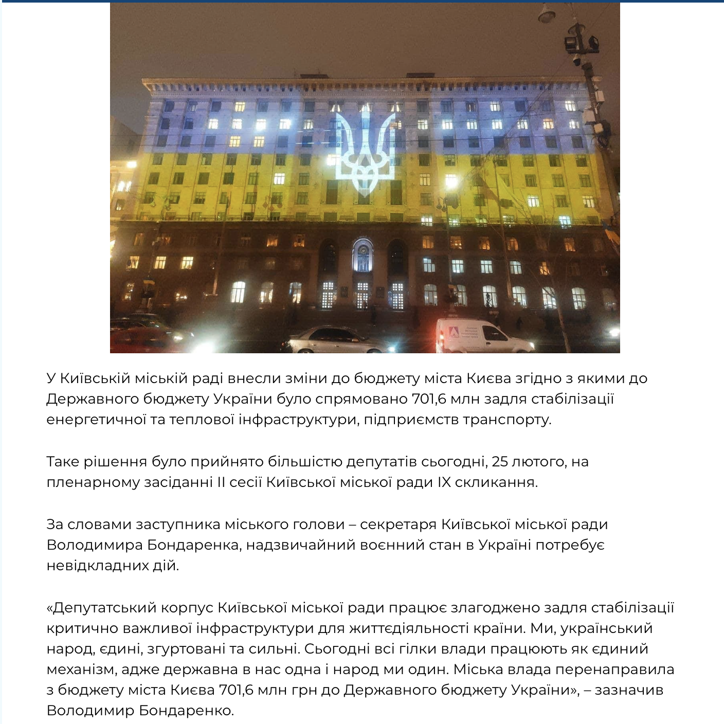 Отже, попри агресію росії та бойові дії, міська рада не тільки не зупинила свою роботу, а й зосередила всі свої зусилля для оборони не Києва і всієї України. Керівництво столиці успішно справляється з усіма викликами, які виникають внаслідок війни.