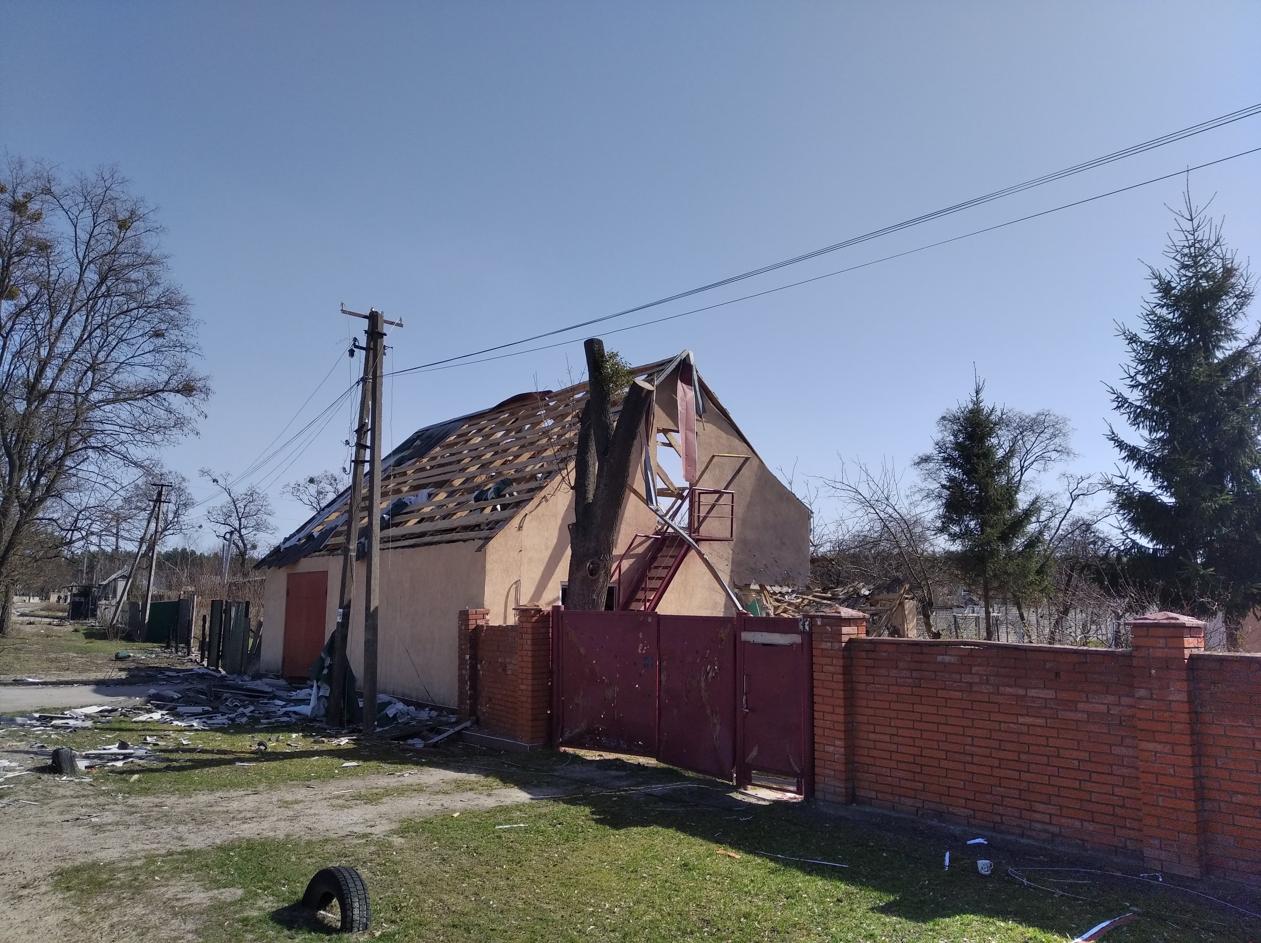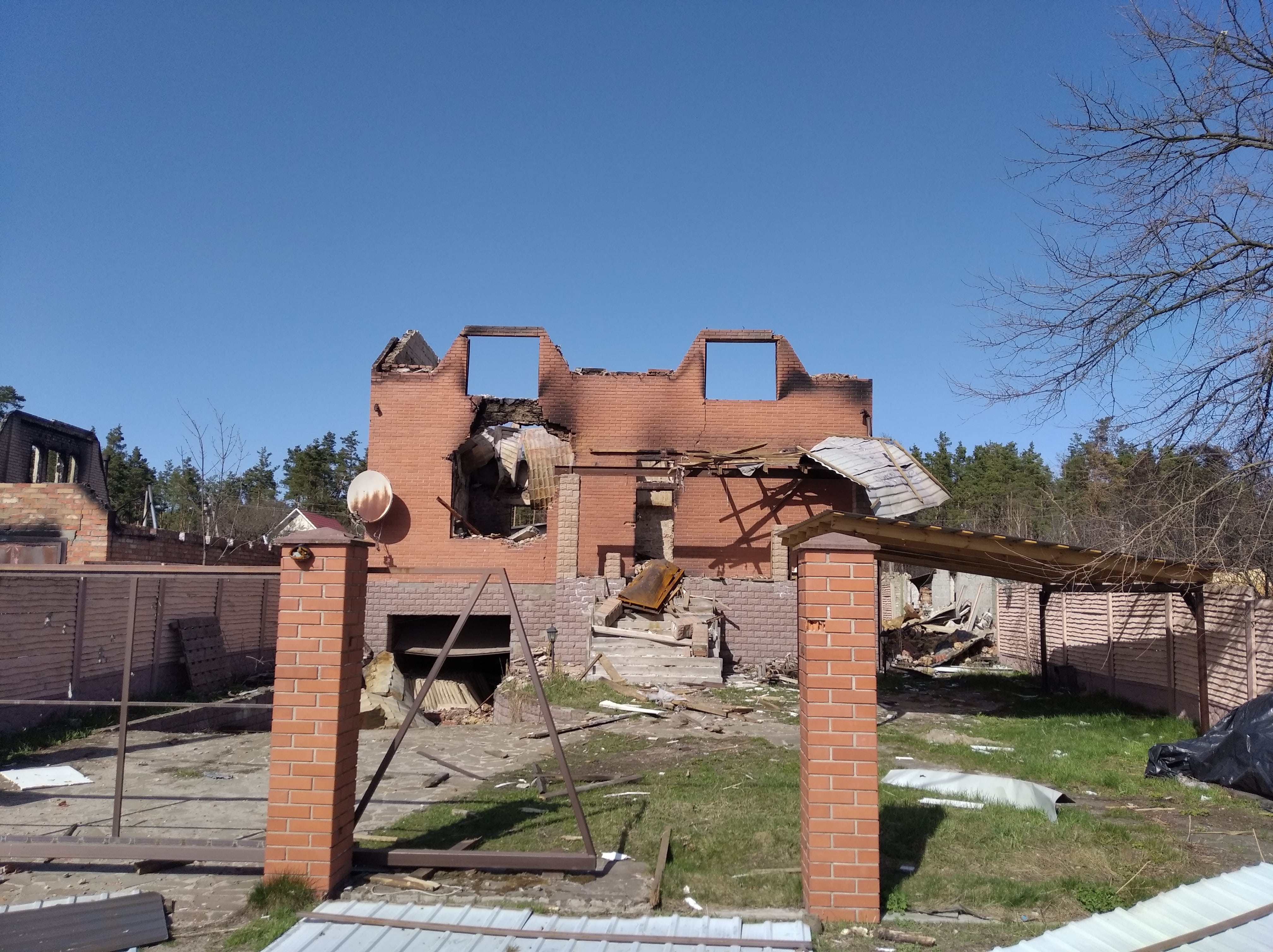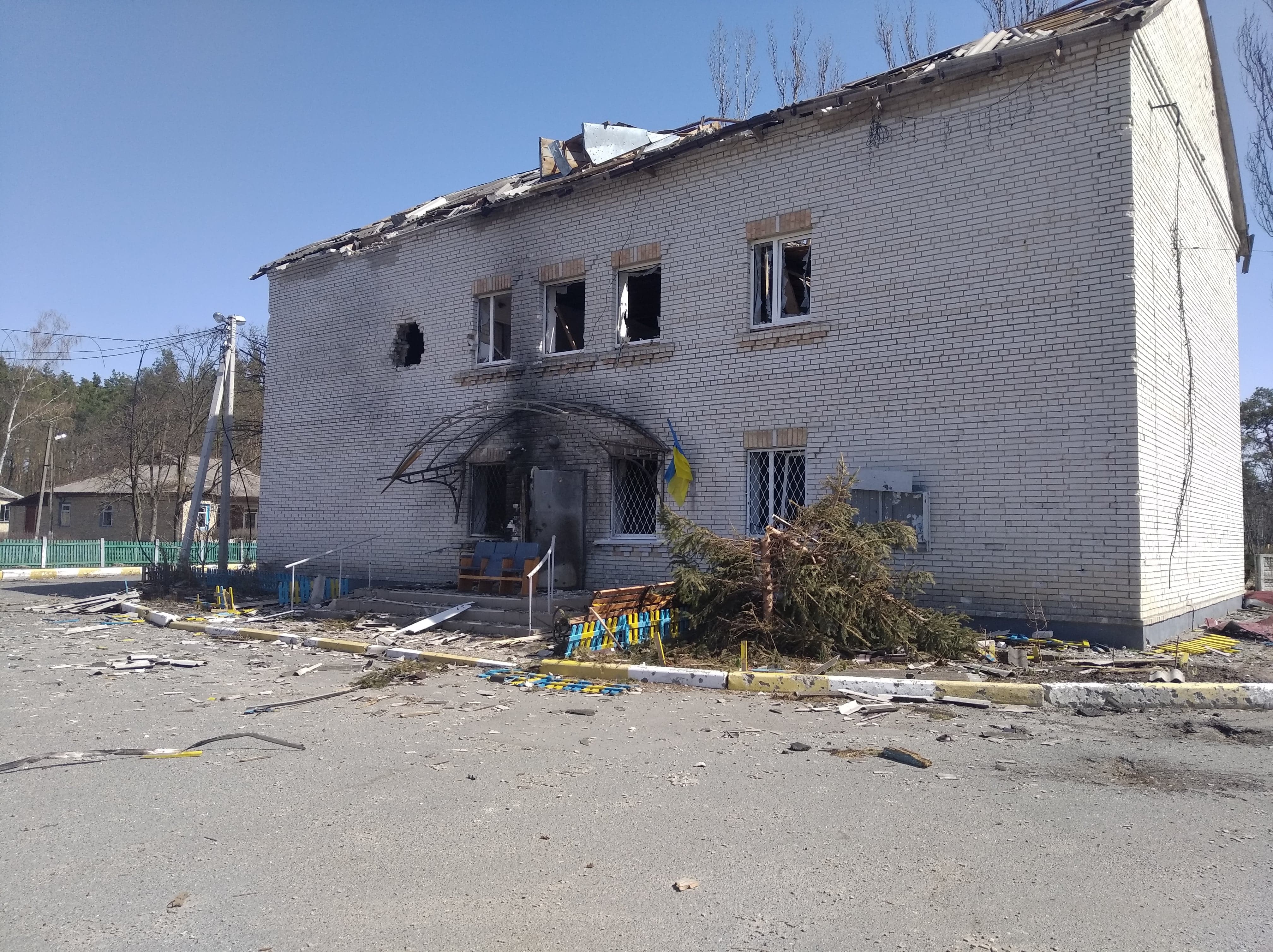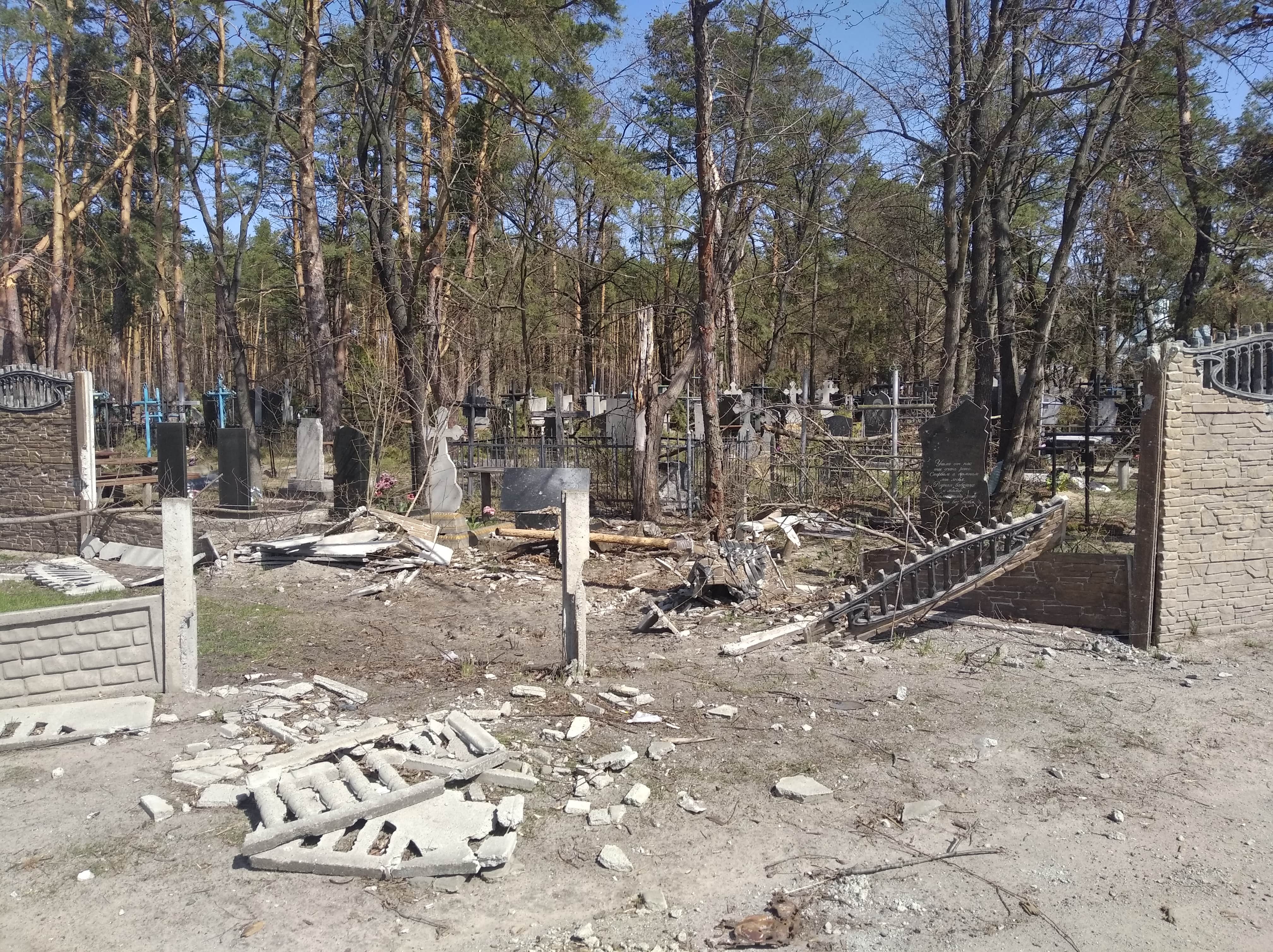 Знищені будинки, розбиті автівки, понівечені дороги, зруйновані могили на цвинтарі, повалені дерева, розкидані рештки снарядів, трупи загарбників та закатованих і вбитих осколками мешканців — так виглядало село наприкінці березня, коли росія почала відводити війська з Київщини.