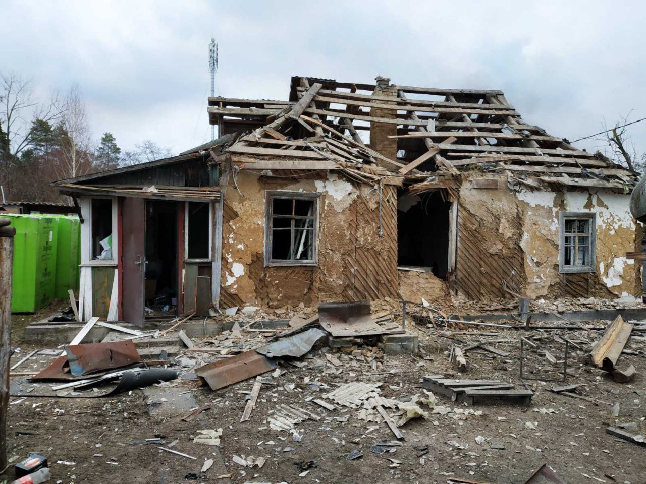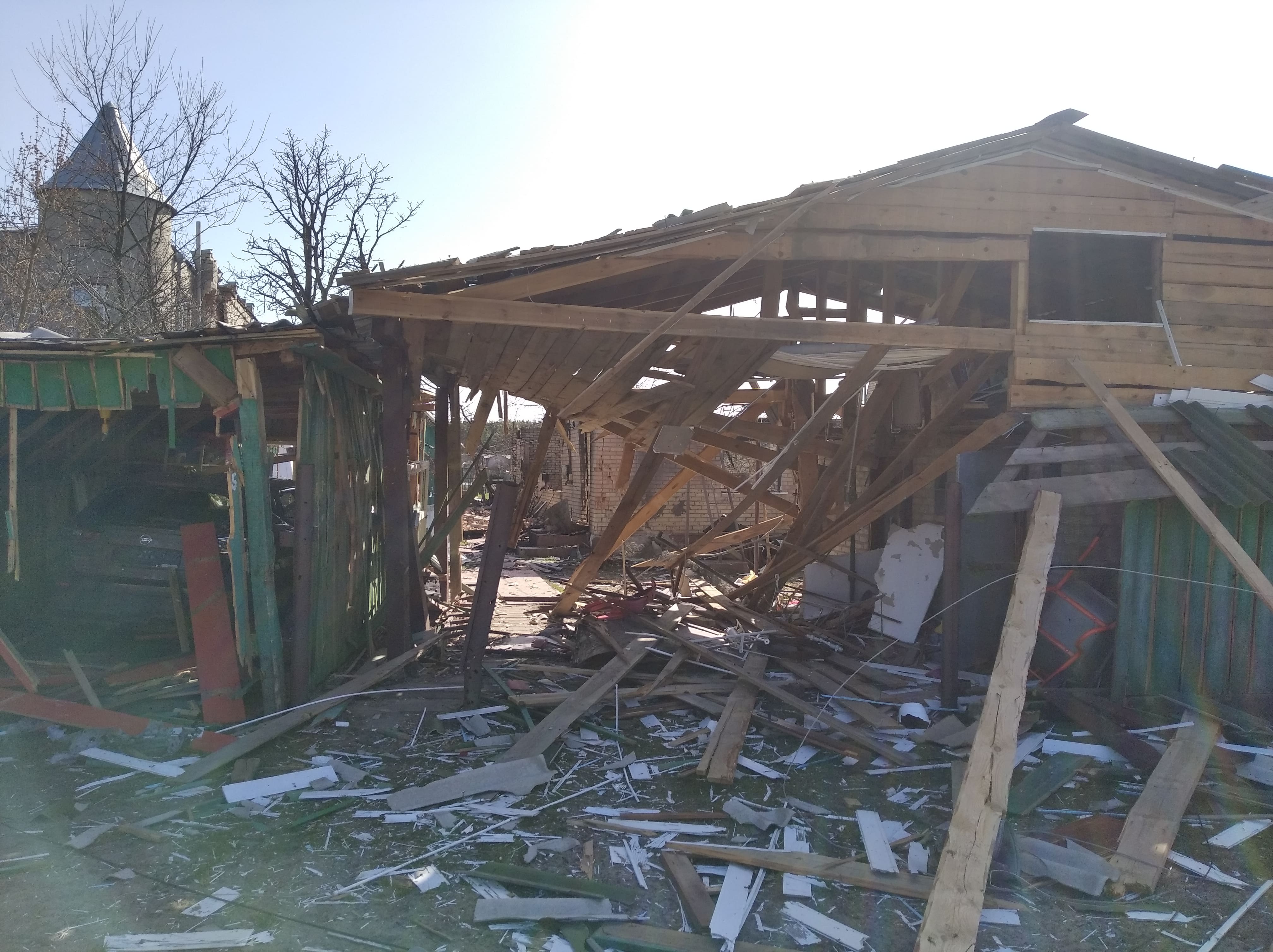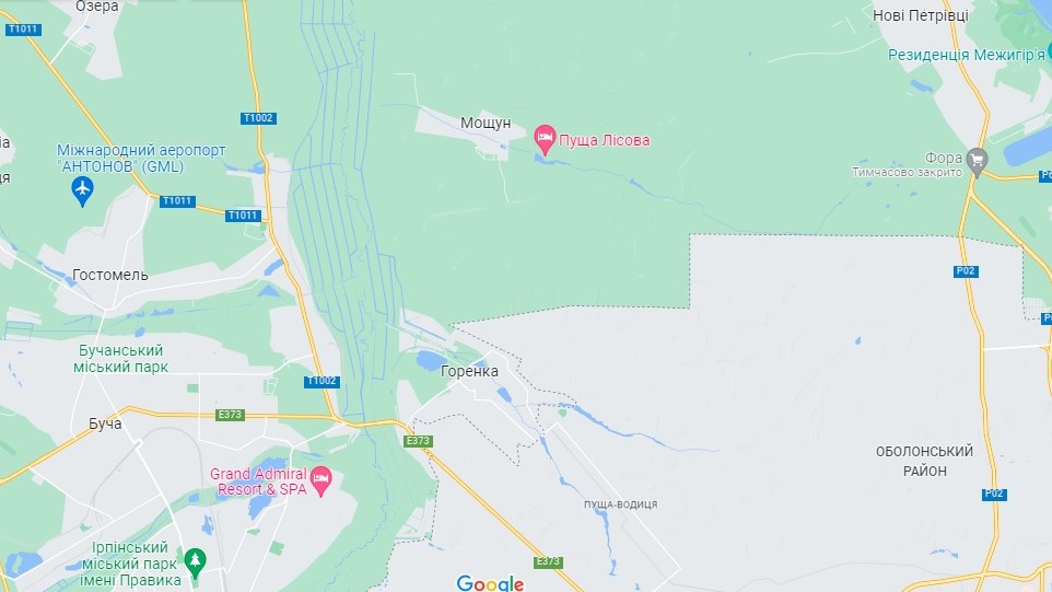 Село Мощун фактично стерте з лиця землі. Вся дорога до Пущі-Водиці повністю розбита. Цей кліматичний курорт, розташований у межах Оболонського району в північно-західній частині столиці, теж відчутно постраждав від обстрілів.