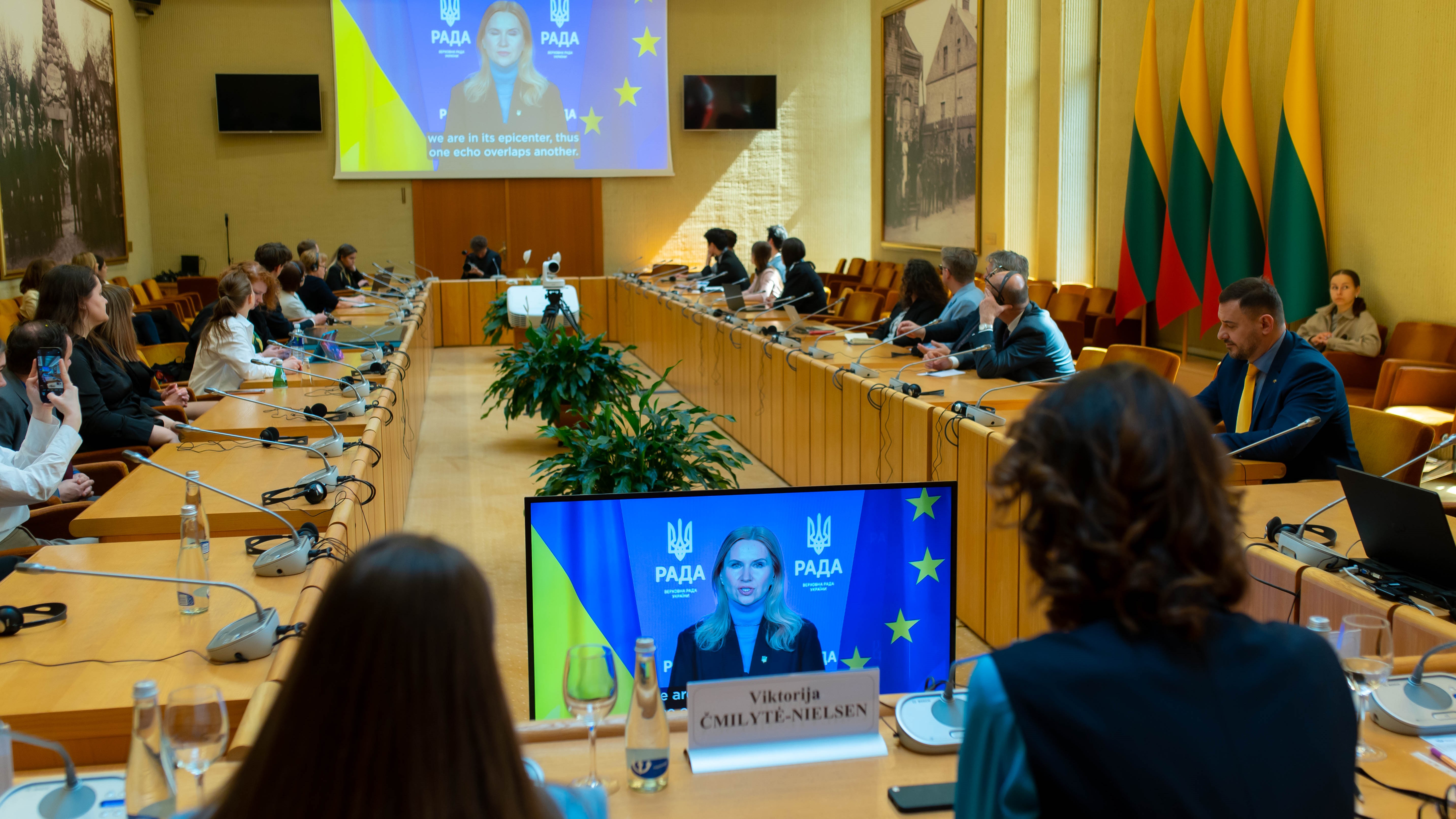 У своєму вступному слові Спікера Сейму Литви пані Вікторія Чміліте-Нільсен зазначила, що за більше ніж два роки повномасштабного вторгнення Росії до України, новини більше не шокують так, як це було на початку вторгнення, незважаючи на факт того, що звірства, які відбуваються, не є менш болючими:
