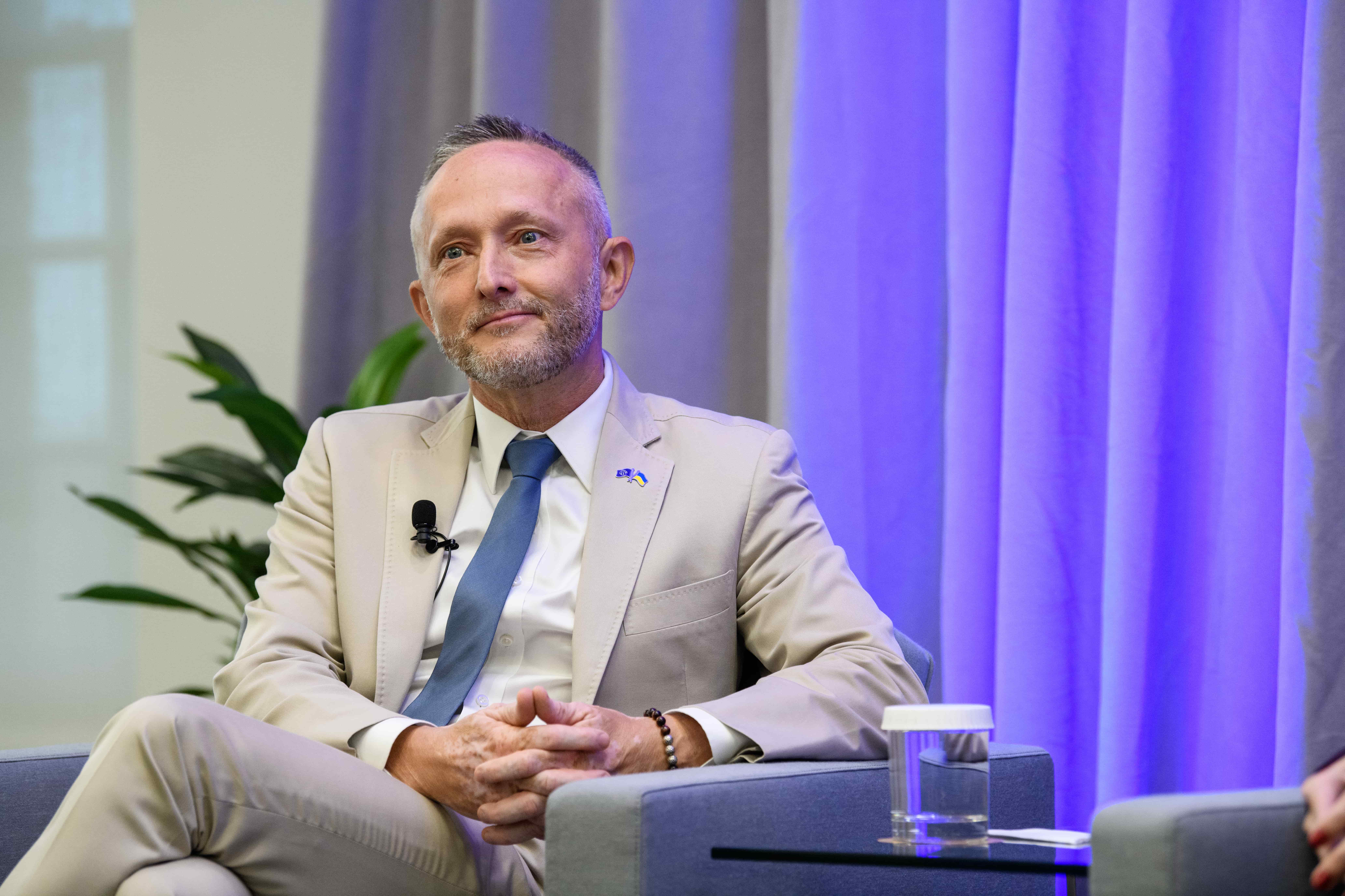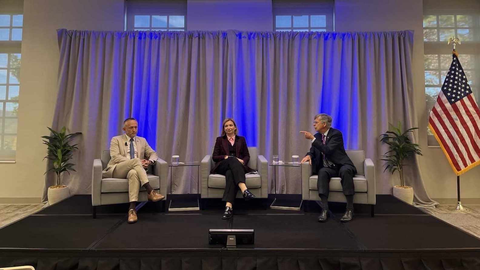 Посолка також наголосила, що пріоритет номер один – це перемога у війні. Але ми як суспільство також вже зараз думаємо, як потім будемо перемагати у мирі – саме тому вже зараз готуємо всі ті реформи, що відбуваються. У тому числі, готуємося до перших повоєнних виборів: «Зброя – це те, чого ми потребуємо для вільних і чесних виборів просто зараз. Це найбільш критична потреба, щоб ми могли перемогти швидше. І чим швидше ми переможемо та звільнимо наші території, тим швидше ми зможемо перейти від дискусії про те, як мають відбуватися вибори до організації виборів».