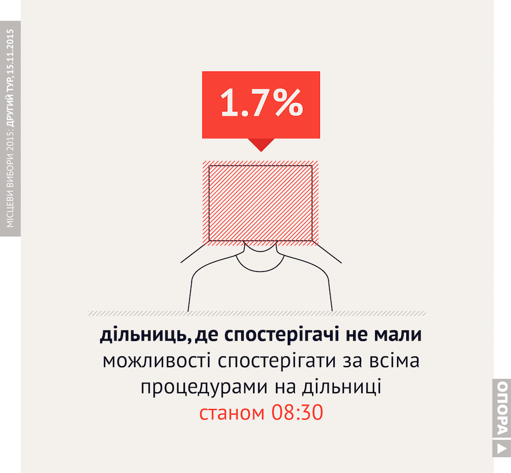 Лише трохи більше 1% спостерігачів ОПОРИ повідомили, що ДВК не забезпечували їм можливість для повноцінного спостереження за усіма виборчими процедурами під час ранкового засідання та на початку голосування. Така ж ситуація спостерігалася в рамках першого туру голосування.