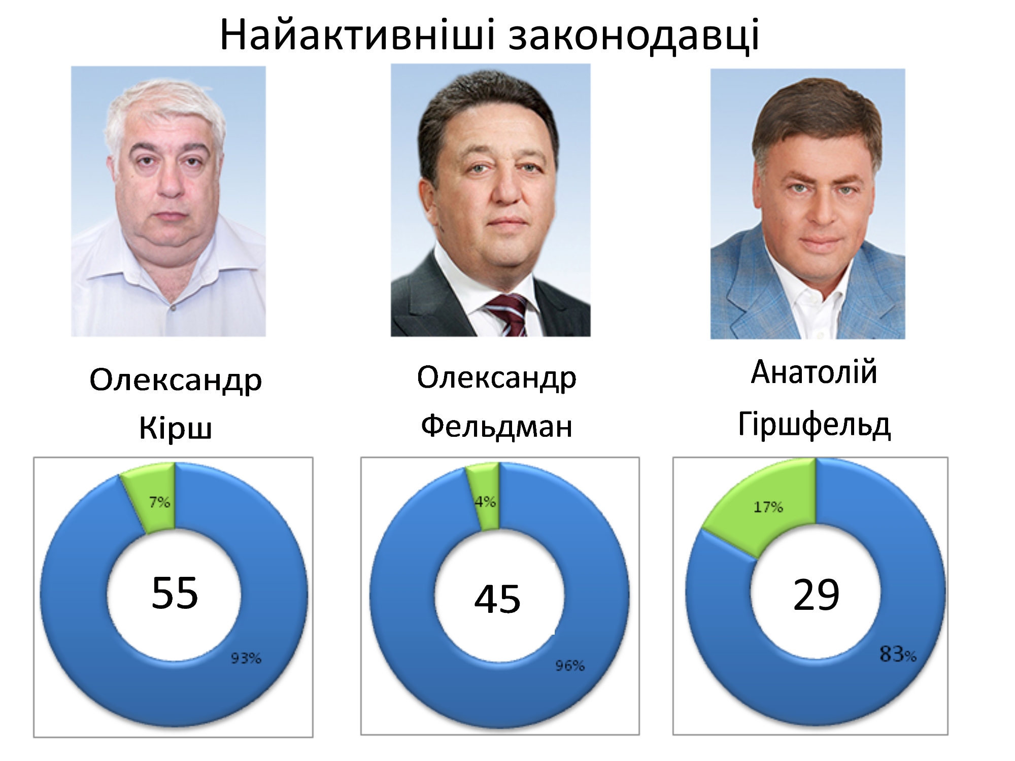 Пасивністю у законотворчій діяльності відрізняються народні депутати Дмитро Добкін (0 законопроектів), Володимир Кацуба (3), Віталій Хомутиннік (10).