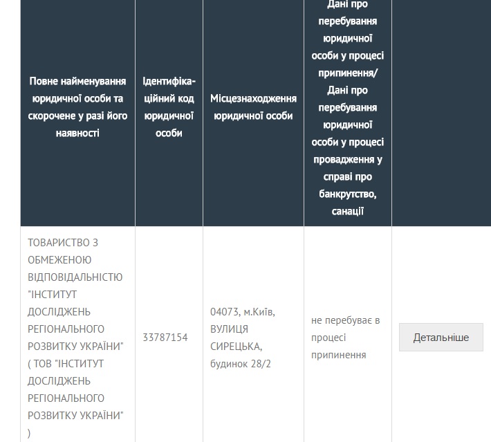 ОПОРА вирішила перевірити організацію, котра, як зазначено на виданні, проводила опитування. Так, в єдиному державному реєстрі юридичних осіб, фізичних осіб-підприємців та громадських формувань вона зареєстрована. Проте номери телефонів, вказані у реєстрі, виявились недійсними та на даний момент не працюють.