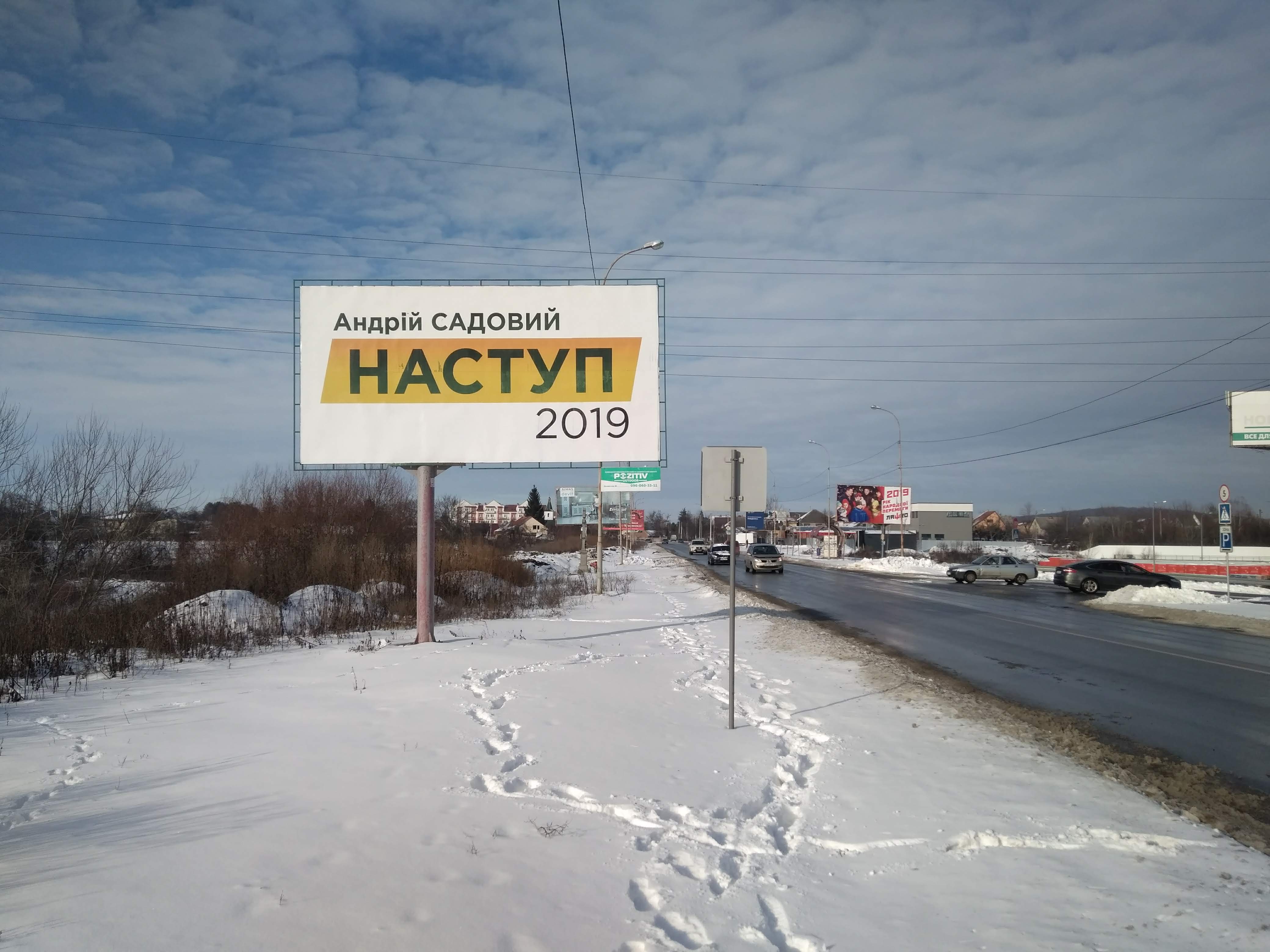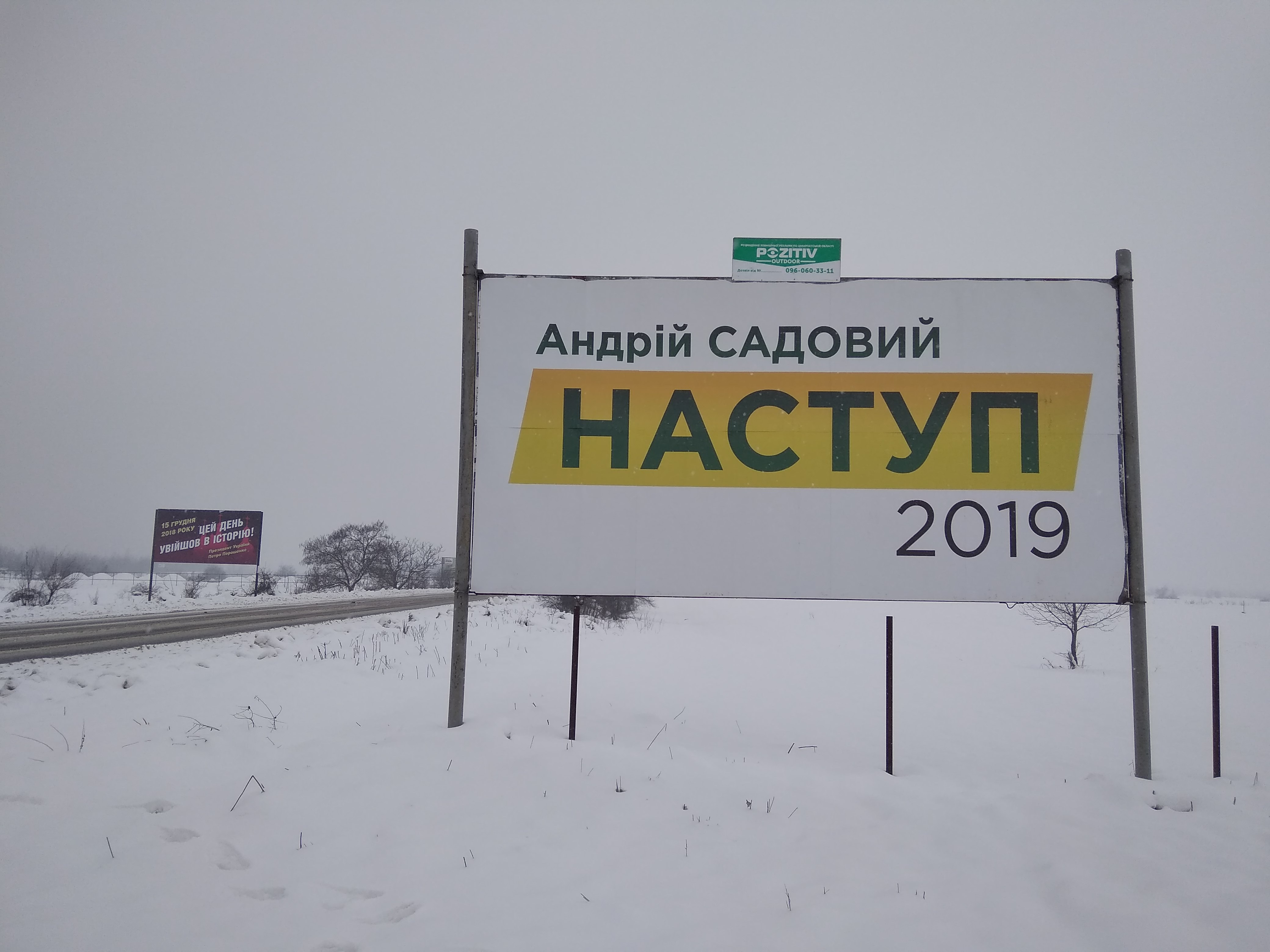 14 січня у Тячівському районі спостерігач ОПОРИ зафіксував білборд «Андрій Садовий, НАСТУП, 2019» без вихідних даних. Борд знаходиться обабіч траси на відрізку дороги із Тячева до селища Буштино. 11 січня три такі ж білборди були зафіксовані в Ужгороді.