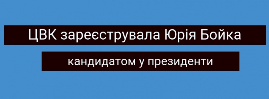 Центральна виборча комісія зареєструвала Юрія Бойка кандидатом на пост Президента України. Двом претендентам - Юрію Боярському та Петру Рекалу - у реєстрації відмовлено.