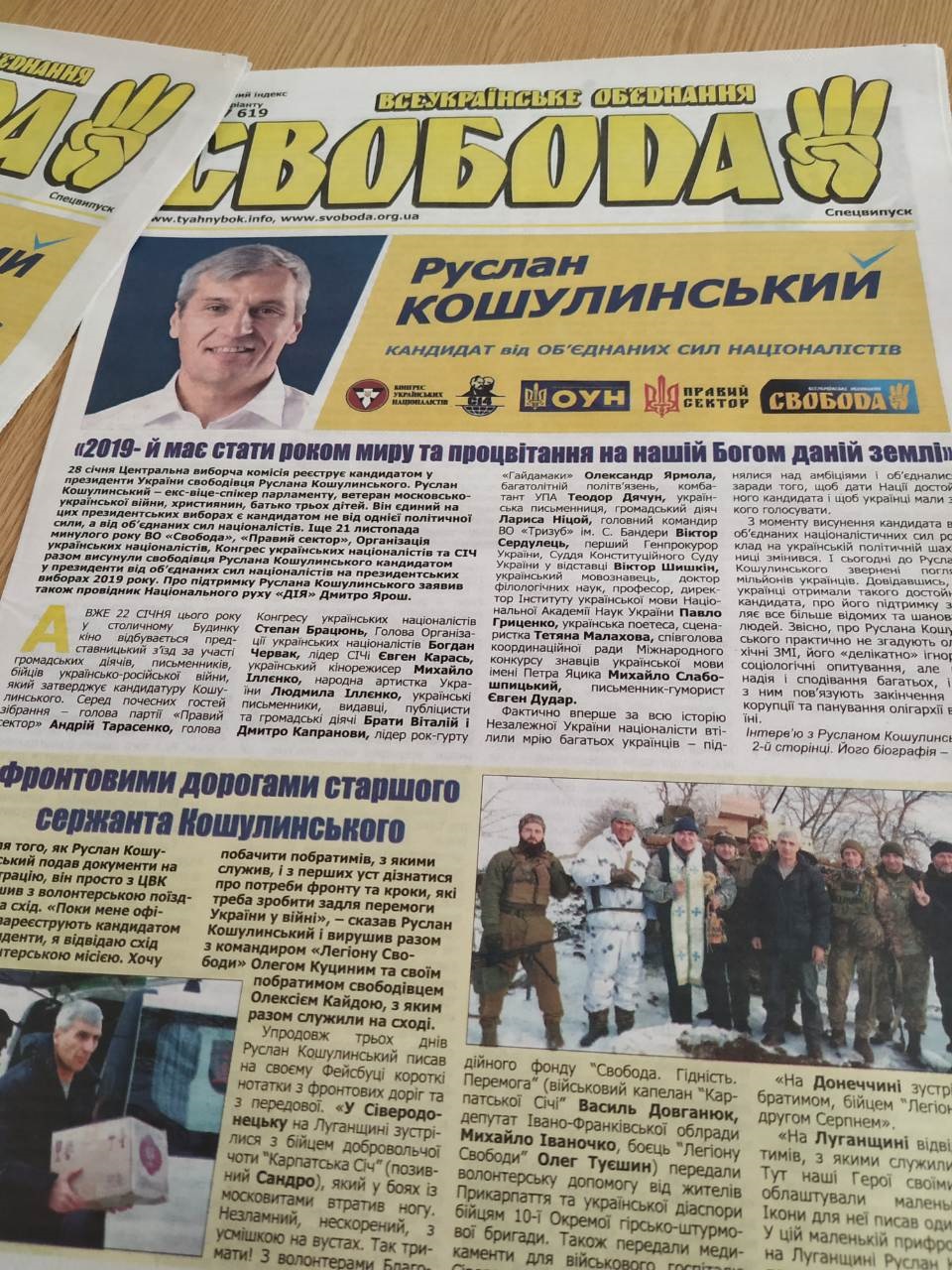 Крім того, виступаючи перед вчителями, депутат зазначив: «Зверніть увагу на кандидатуру Руслана Кошулинського» і розповів, як на місцевих виборах у 2015 році агітував за теперішнього міського голову Хмельницького, теж представника ВО «Свобода», у перемогу якого мало хто вірив.