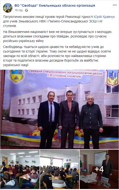 Зазначимо, що аналогічні уроки патріотичного виховання уже відбулися у трьох школах Деражні, в Старокостянтинові та Віньківцях. Відповідна інформація є на сторінках у Facebook Юрія Кравчука та ВО "Свобода" Хмельницька обласна організація.