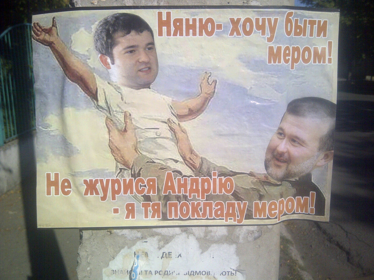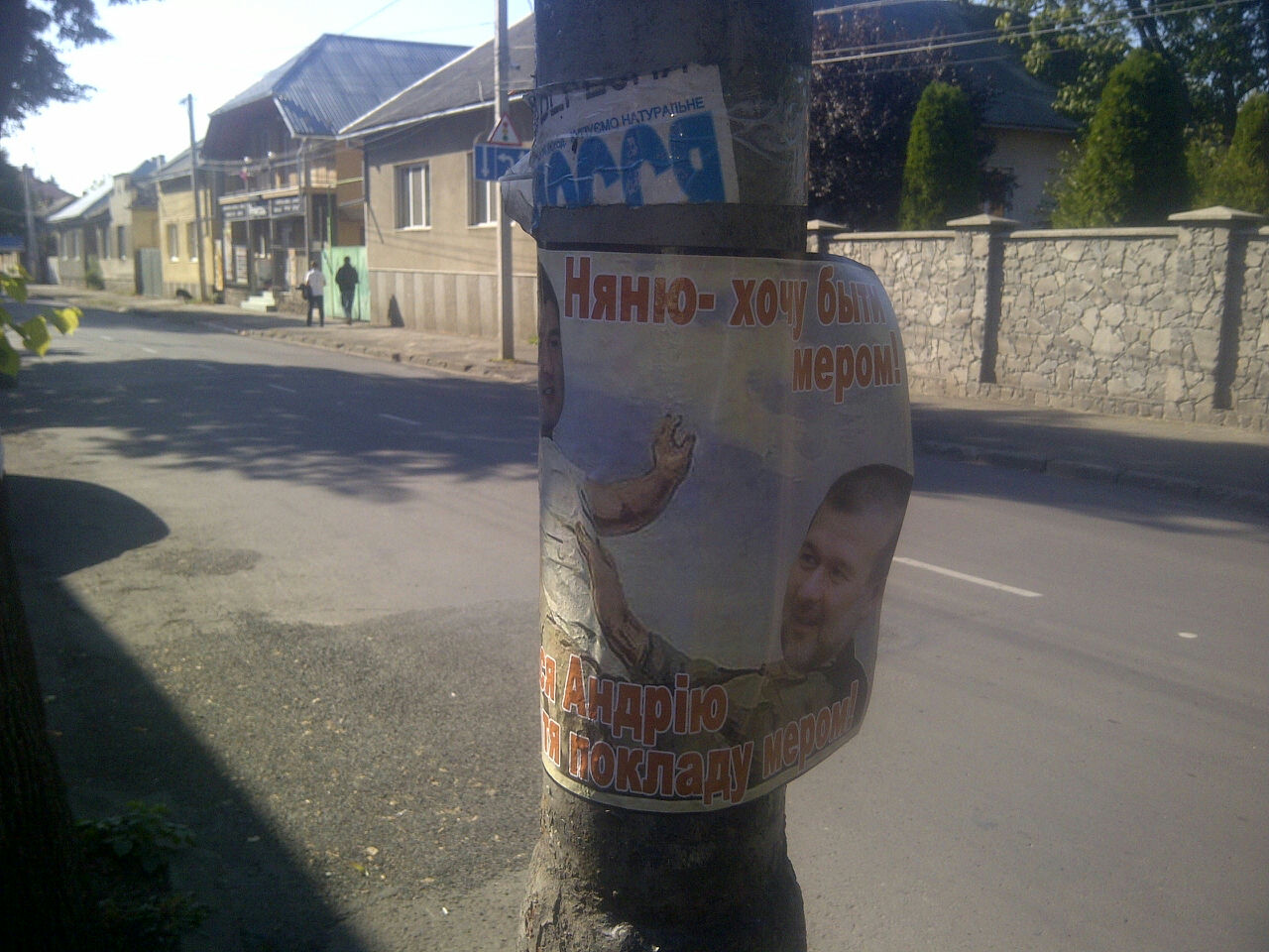 На листівках месидж із негативним посилом – нібито батько виконує забаганку сина і стати міським головою і «ставить його на посаду». Ця продукція також не містить вихідних даних.