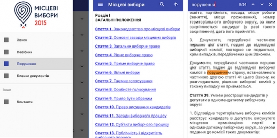 Мобільний застосунок «Місцеві вибори» Громадянської мережі ОПОРА містить «набір виживання» для кожного спостерігача, журналіста та активного виборця під час місцевих виборів 25 жовтня 2015 р. За допомогою додатку ви завжди матимете з собою: