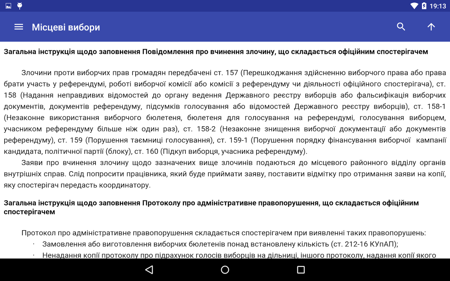 - Бланки актів, скарг і заяв щодо виборчих порушень з інструкцією по заповненню.