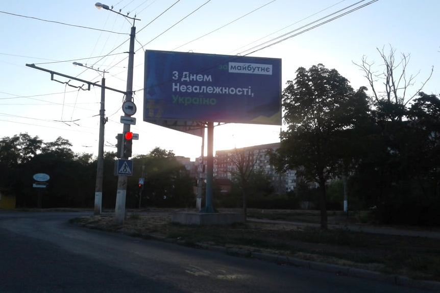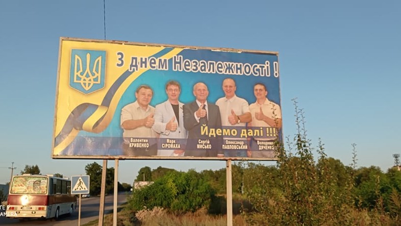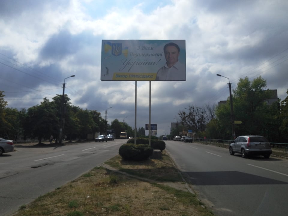 У Світловодську ймовірні кандидати у депутати місцевих рад на білбордах розмістили власні фото. На фоні неба містян привітав Віктор Приходько. У зовнішній рекламі використали прапор, герб України та напис «З Днем Незалежності України!».