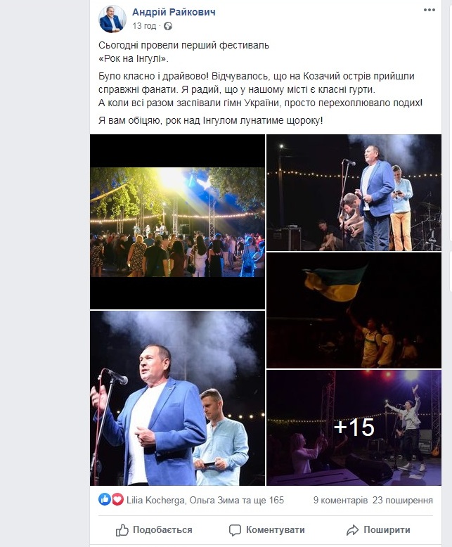 Майданчиком для привітань стали і соціальні мережі. Дописи з побажаннями виставляли як на сторінках політичних сил, так і на особистих акаунтах політиків. Міський голова Кропивницького Андрій Райкович опублікував пост про проведення першого фестивалю «Рок на Інгулі». Очільник міста написав, що це було класно і драйвово. Він пообіцяв проводити такі заходи кожного року.