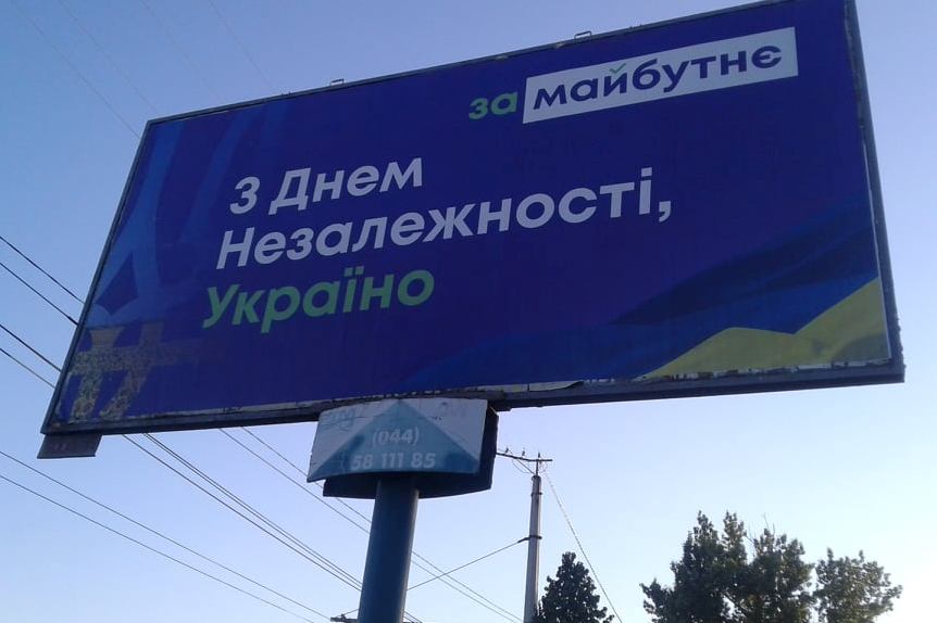 Партійні осередки та ймовірні кандидати в депутати міських рад привітали на білбордах мешканців Кропивницького та Світловодська. На зовнішній рекламі політичної партії «За майбутнє» з правого боку розташований малий герб України, а фоном використали прапор. На білборді написали «З Днем Незалежності, Україно! За майбутнє».