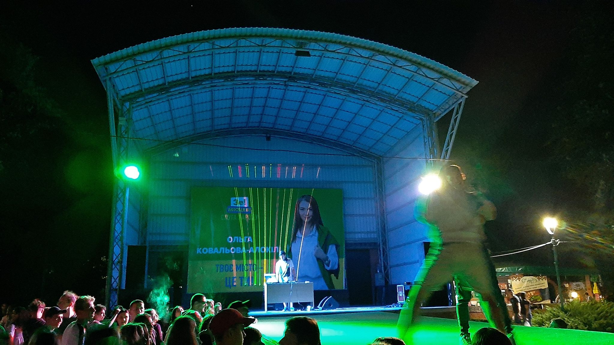 На святкові вихідні у Дендропарку провели низку заходів: майстер-класи, ляльковий театр з виставою, святковий концерт. На центральній сцені під час заходів розмістили банер з зображенням ймовірної кандидатки на посаду міського голови Кропивницького Ольги Ковальової-Алокілі від партії «Слуга народу». Фон реклами у традиційному зеленому кольорі та зазначено: «Зе! місцеві вироби. Твоє місто – це ти!».