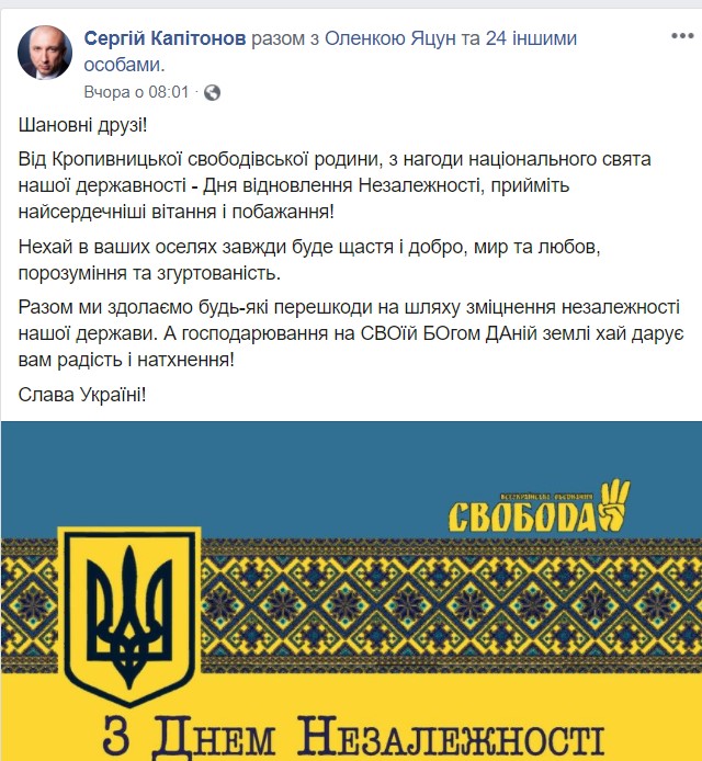На Кіровоградщині до Дня Незалежності активізувалися політики, які вітали мешканців області із білбордів, у соціальних мережах, а також організовували свята та форуми.