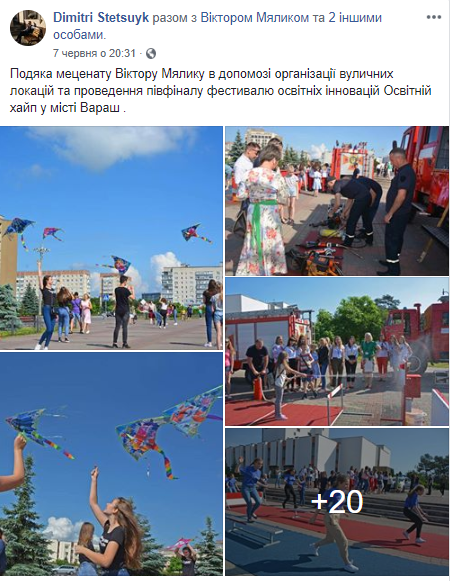 7 червня Віктор М’ялик допоміг в організації вуличних локацій та проведення півфіналу фестивалю освітніх інновацій Освітній хайп у місті Вараш.