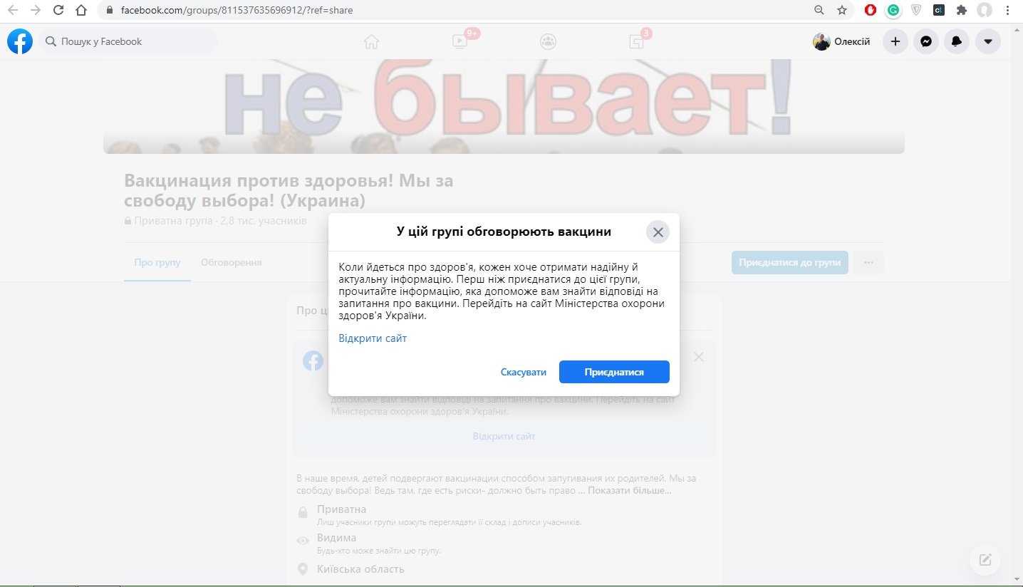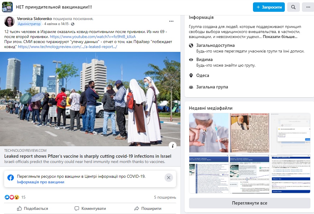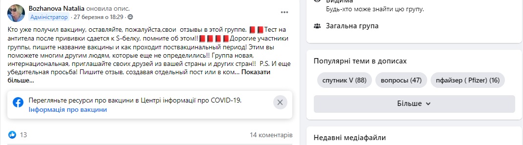 Цілком можливо, що саме така політика платформи й є причиною того, чому знайти групи противників вакцинації доволі важко. Адже, як зазначалося вище, соціальна мережа декларує, що не лише блокує контент, який порушує її внутрішні правила, а й видалятиме його першоджерела (у випадку, якщо вони ставатимуть порушниками повторно).