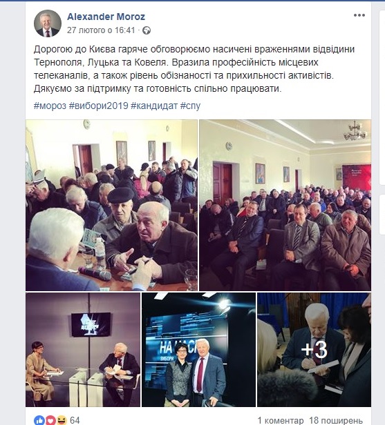 26 лютого в актовому залі Тернопільського кооперативного торговельно-економічного коледжу Олександр Мороз зустрівся із виборцями. Кандидат говорив про запровадження реформ та подолання кризи в економіці. Також Олександр Мороз був гостем ефіру передачі «Без цензури» на місцевому телеканалі ІНТБ, де розповідав про своє бачення розвитку країни.