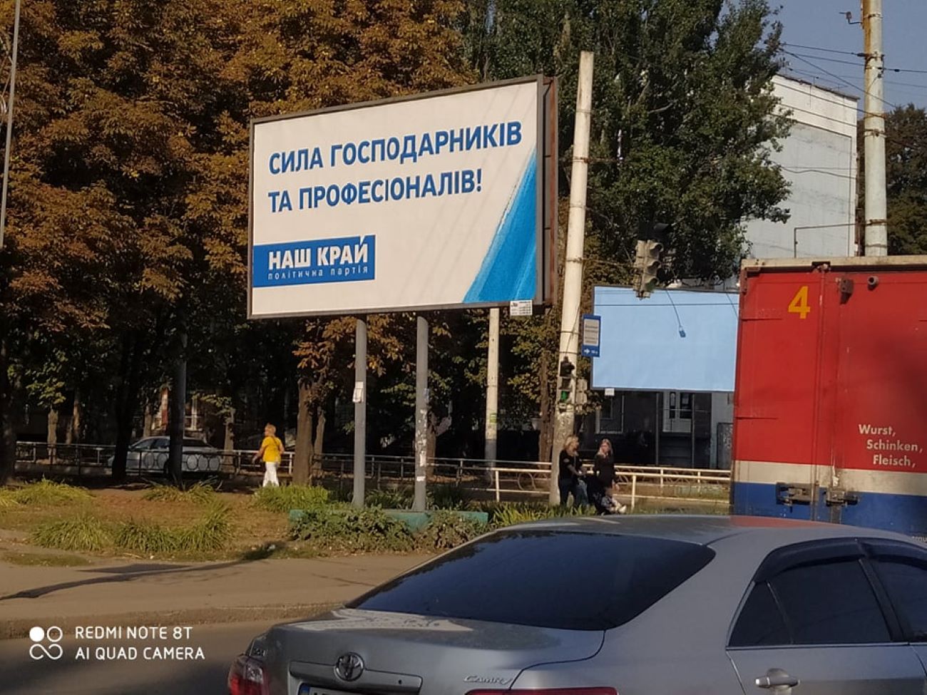 23 вересня спостерігачі ОПОРИ зафіксували білборди без вихідних даних: по вул. Чарівна, 1б, білборд із зображенням Дмитра Шевчика та по вул. Маршака, 7а, білборд партії «Наш край».