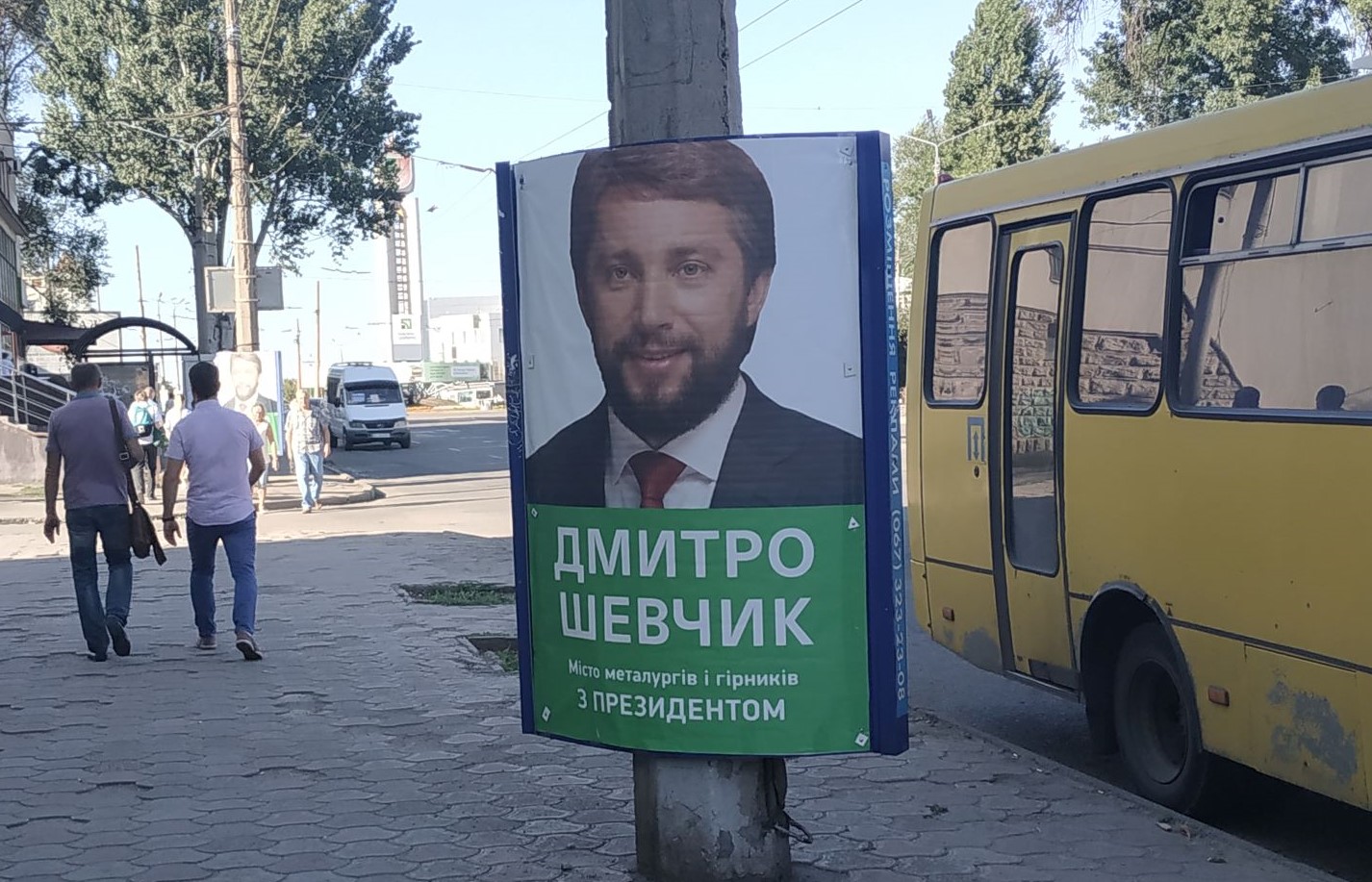 На вулицях міста зафіксовані білборди партій «Пропозиція», «За майбутнє», «Партії Шарія». З середини вересня з’явилися сіті-лайти з обличчям на той момент потенційного кандидата на посаду міського голови Дмитра Шевчика та написом – «Місто металургів і гірників з Президентом».