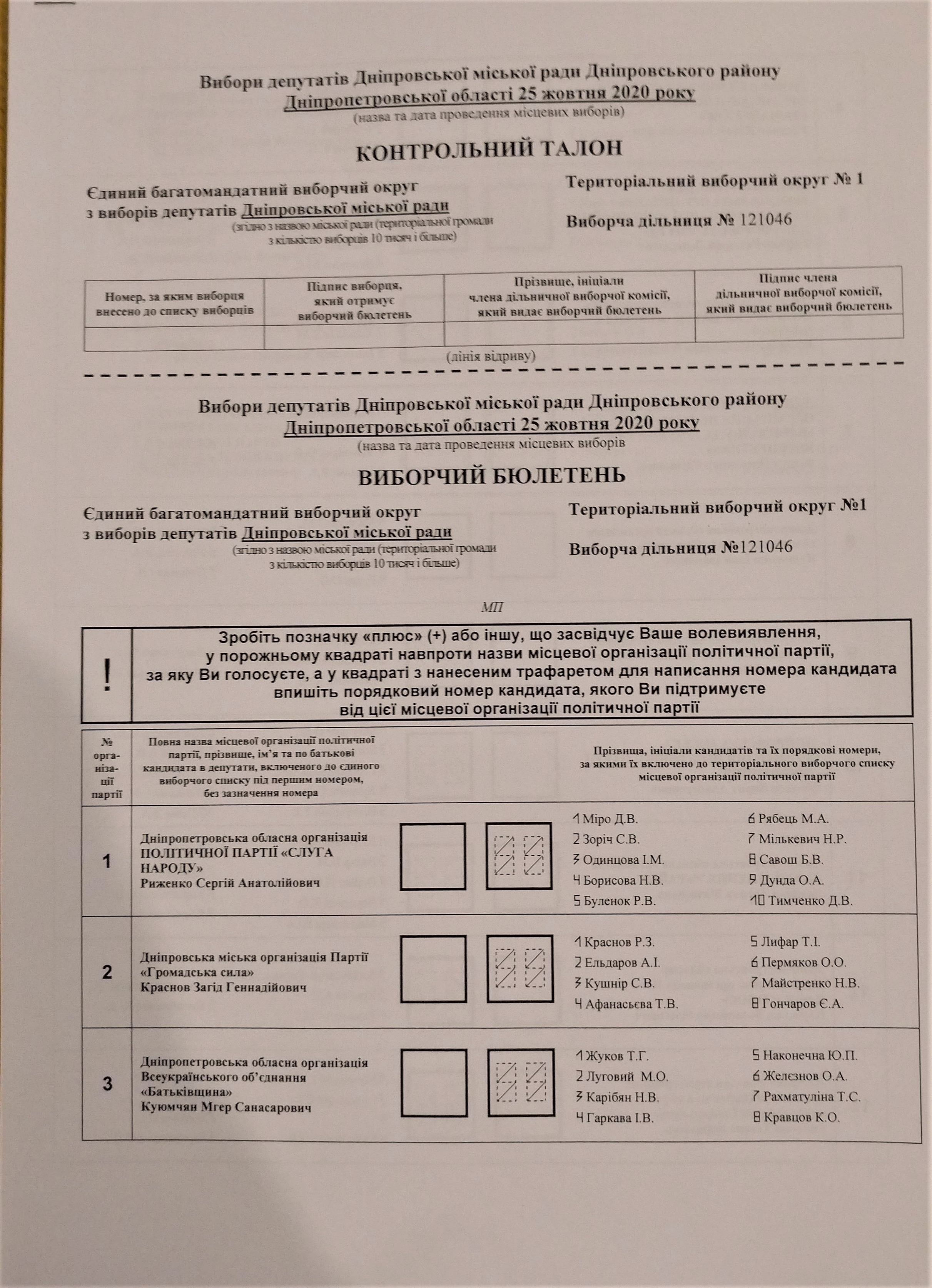 7 жовтня Дніпровська міська ТВК затвердила текст бюлетенів у 8 округах Дніпра та на посаду міського голови.