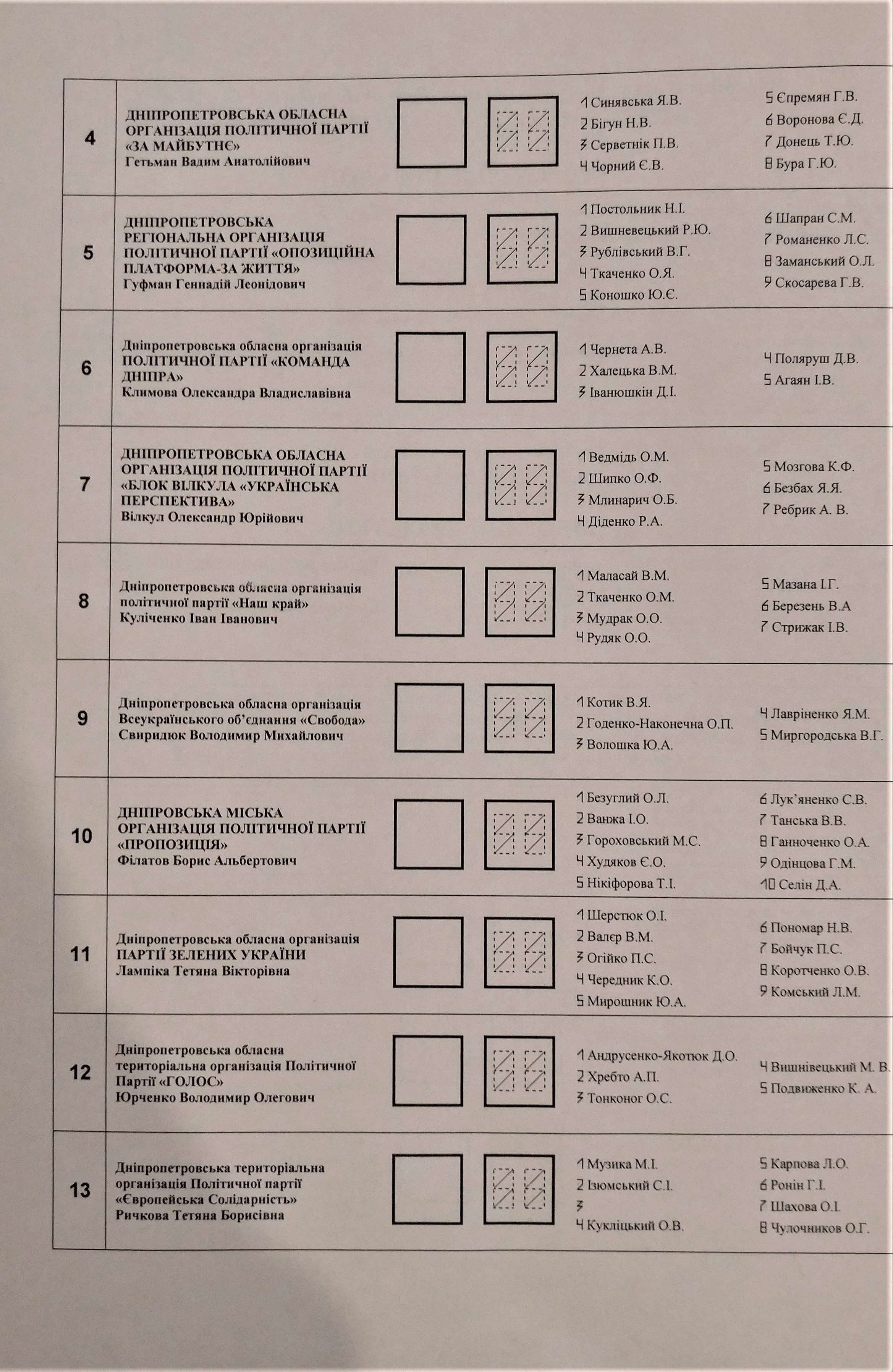 6 жовтня Дніпровська міська ТВК провела жеребкування і визначила порядкові номери організацій партій в бюлетені на виборах депутатів Дніпровської міської ради.