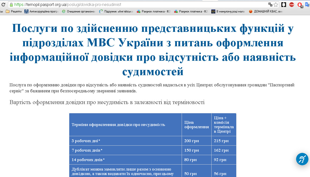 Пошук в інтернеті дав багато інших платних сервісів, де з радістю допоможуть отримати довідку про несудимість за 455-650 грн за 3-5 робочих днів. І навіть до вечора цього ж дня, правда вже за 1500 грн. Складається враження, що такі вимоги закону були прописані для того, щоб кандидати безпідставно переплачували за оперативне отримання таких довідок.
