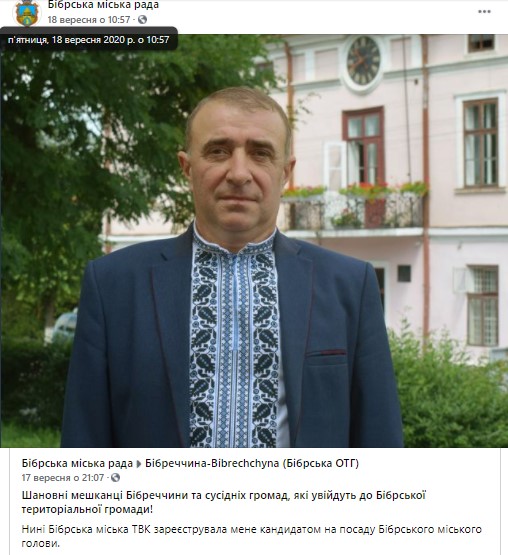 А 18 вересня на сторінці Бібрської міської ради у соціальній мережі Facebook з'явився допис із світлиною Ярослав Гринуса та тектом: «Шановні мешканці Бібреччини та сусідніх громад, які увійдуть до Бібрської територіальної громади! Нині Бібрська міська ТВК зареєструвала мене кандидатом на посаду Бібрського міського голови». Також у дописі Гринуса розповідає про свої здобутки на посаді міського голови і зазначає, що кандидуватиме як самовисуванець.