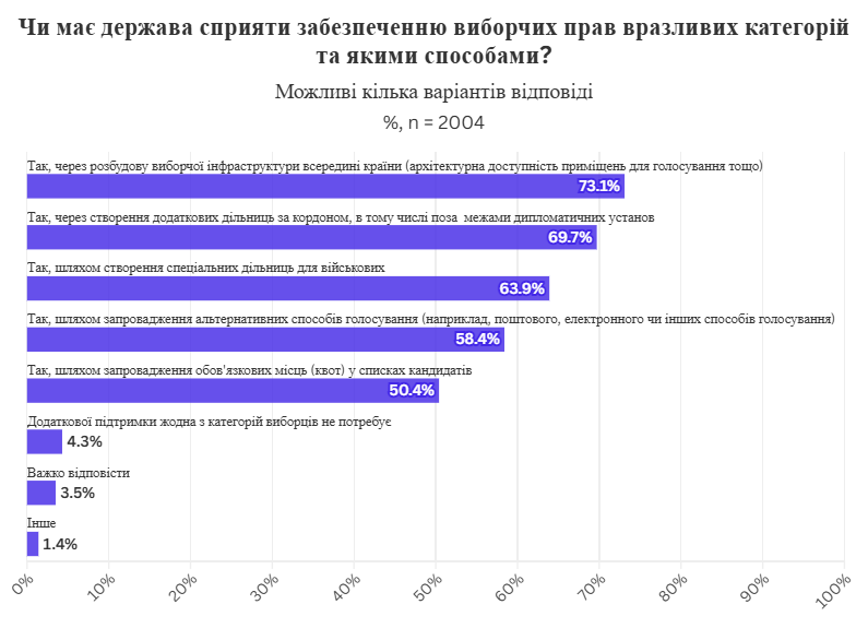З 5 вересня до 7 жовтня 2024 року Київський міжнародний інститут соціології провів дослідження, до якого на замовлення Громадянської мережі ОПОРА ввійшли питання про забезпечення виборчих прав вразливих груп на післявоєнних виборах.
