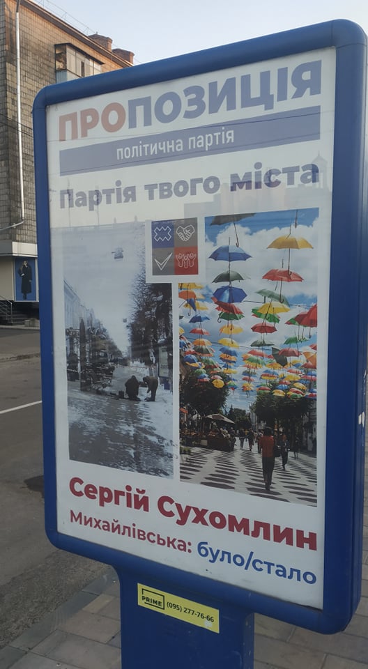 Ще один цікавий випадок зафіксовано у серпні. Зокрема, міський голова звітував перед громадою від імені політичної партії «Пропозиція», від якої планував балотуватися, хоча на попередніх виборах політик балотувався від іншої політичної партії. Крім цього, по місту розміщені сітілайти, білборди та листівки на інформаційних дошках біля будинків, де зображені фотографії відремонтованих та реконструйованих вулиць, скверів, стадіонів та інших об'єктів у місті у форматі «було/стало».