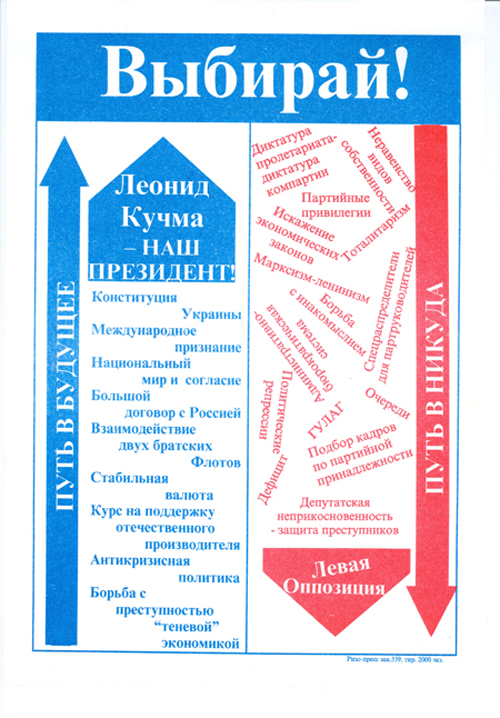 Саме 1999 рік задав загальну спрямованість політичної агітації як агітації не стільки “за”, скільки “проти”. Значна частина агітаційних матеріалів мала характер контрпропаганди і використовувалася як один із засобів боротьби з конкурентами.