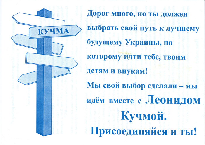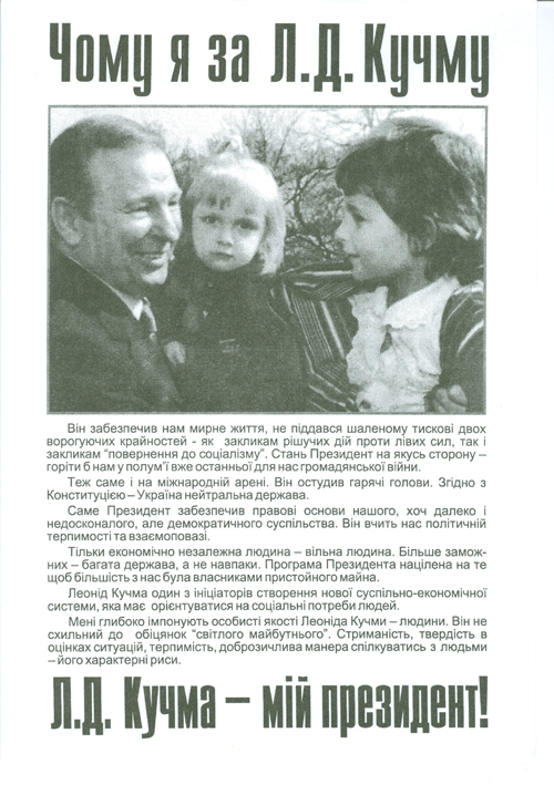 Випускалися навіть пісні, присвячені чинному президенту — дует Ані Лорак і Лері Вінна "Голосуй по уму, голосуй за КучмУ".