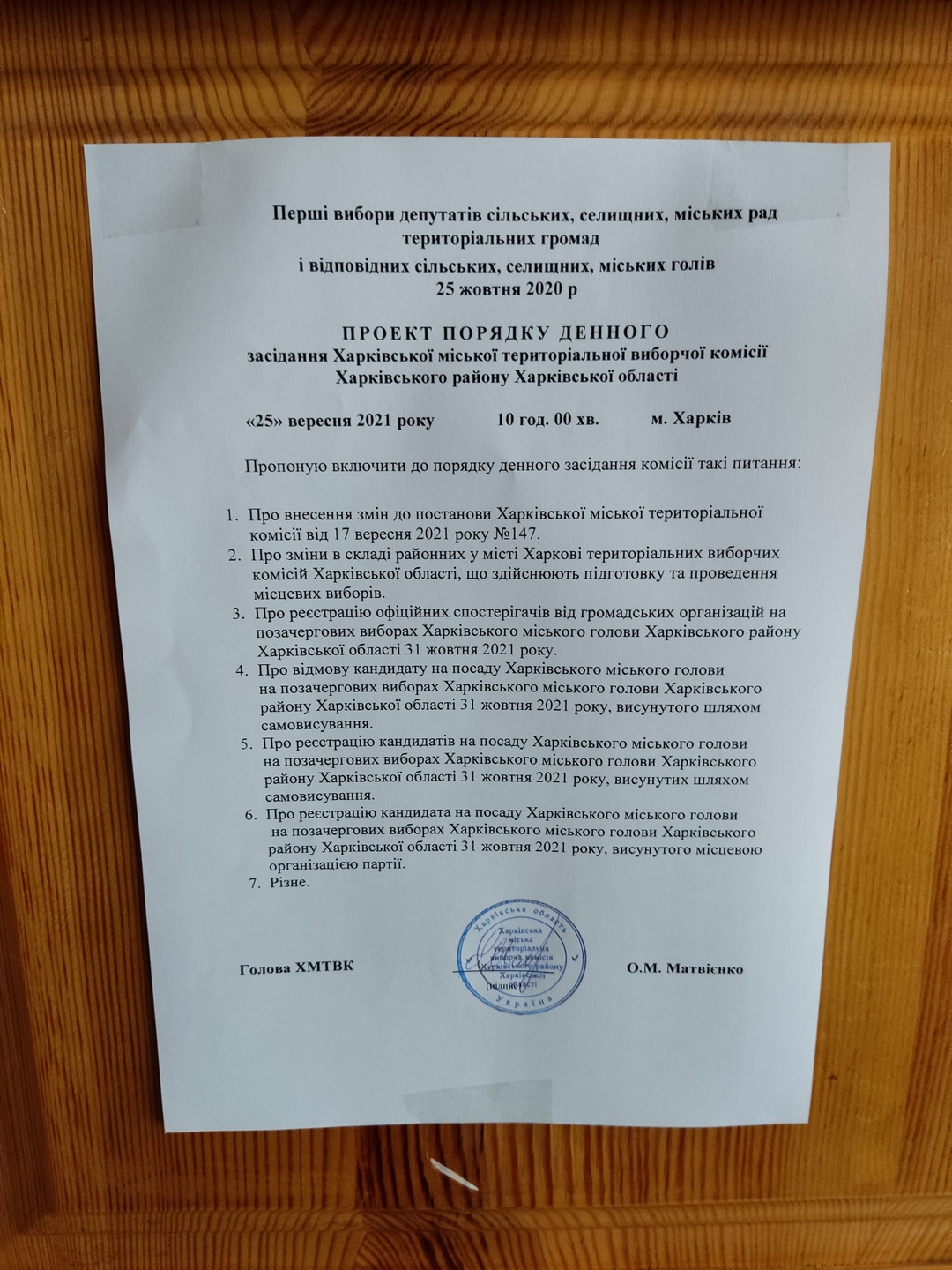З 21 до 30 вересня 2021 року включно триватиме процес висування кандидатів на посаду міського голови від місцевих організації партій та від громадян шляхом самовисування.
