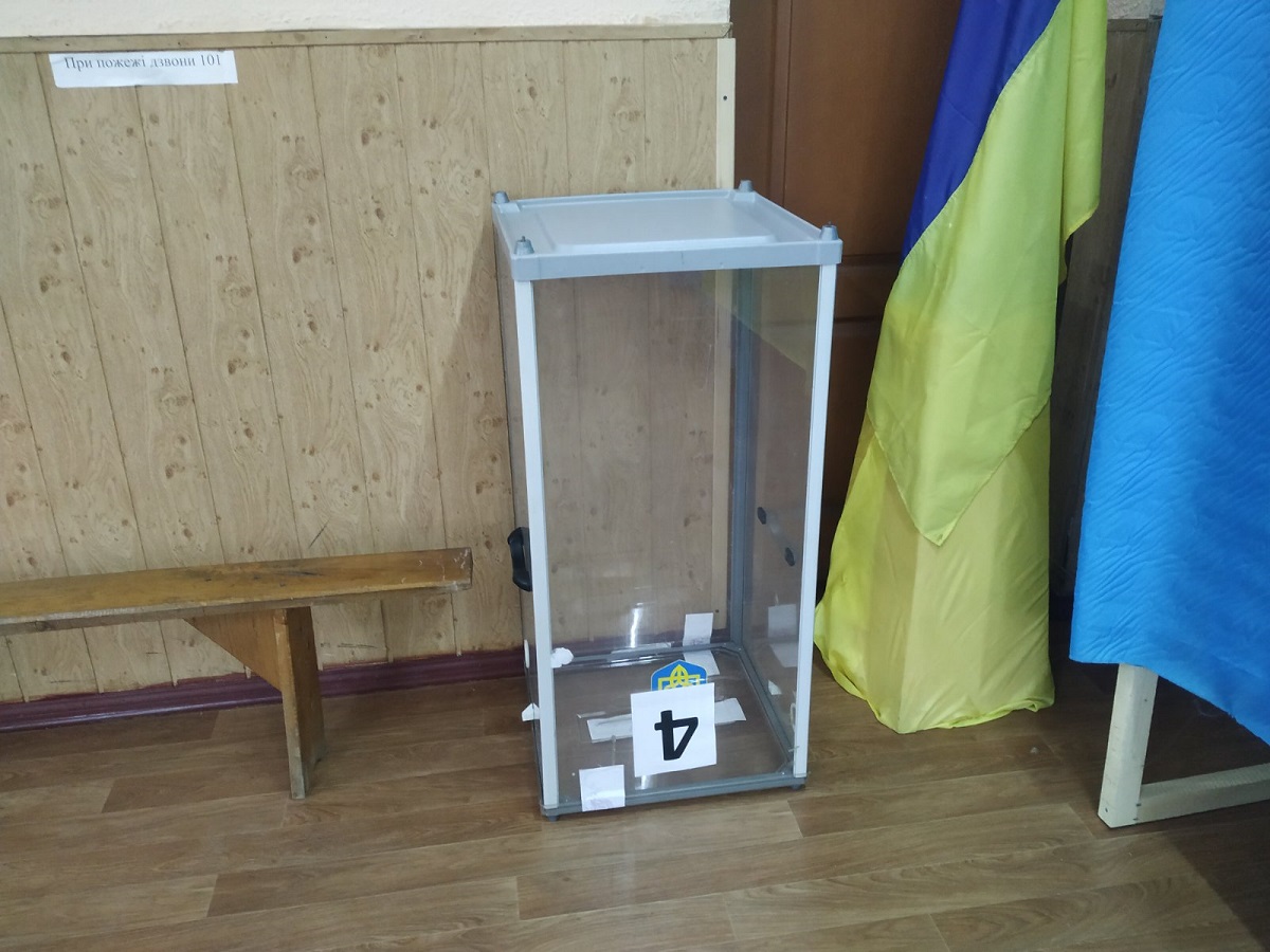 За словами спостерігача ОПОРИ, четверту скриньку на дільниці №681336 члени комісії вирішили не використовувати через пошкодження, тож заклеїли її скотчем, перевернули і відставили вбік.